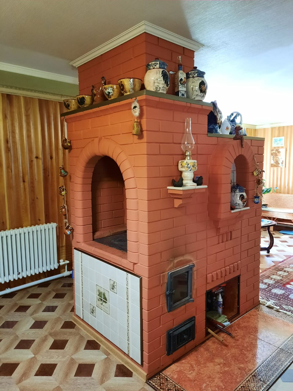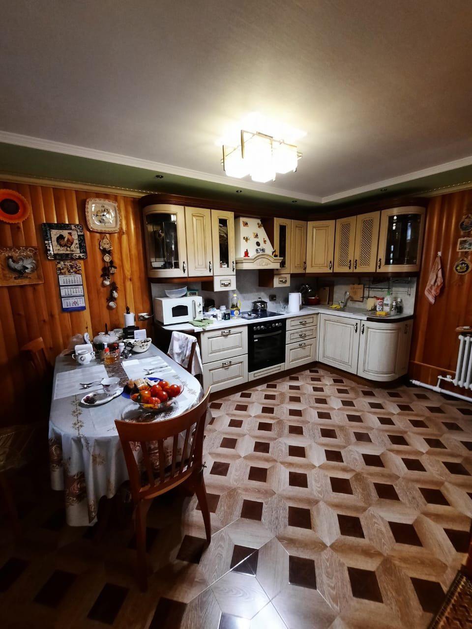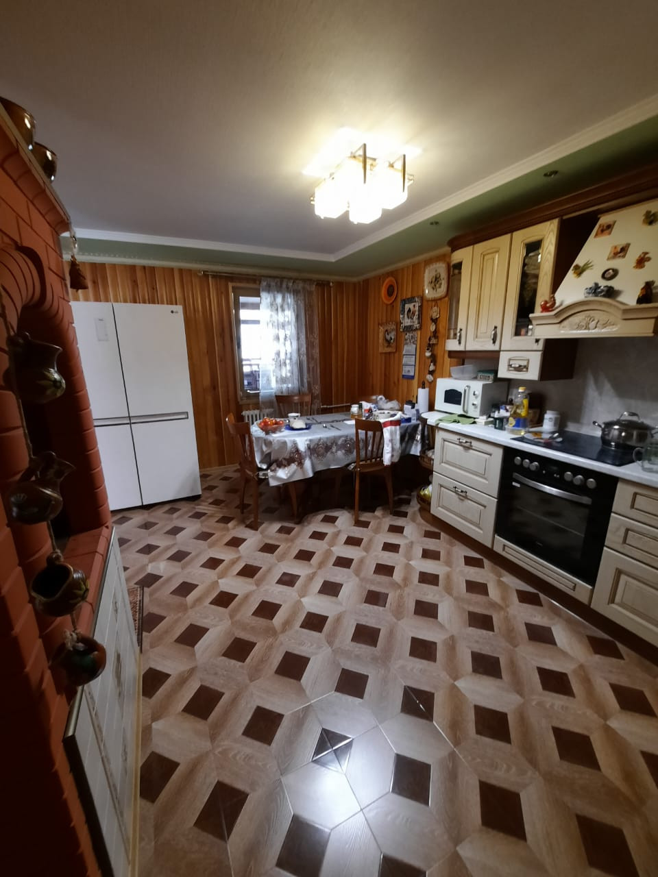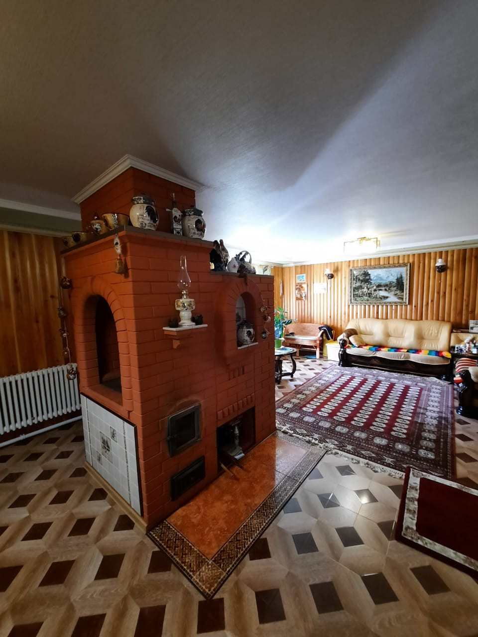 На первом этаже (116,6 кв.м.) расположены 2 комнаты и большая кухня 35, 6 кв.м. с оригинальной, стильной русской печью, без подвала и цокольных помещений, санузел, ванна, душевая кабина.