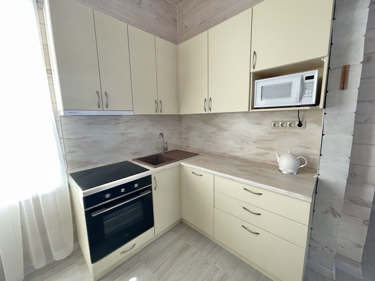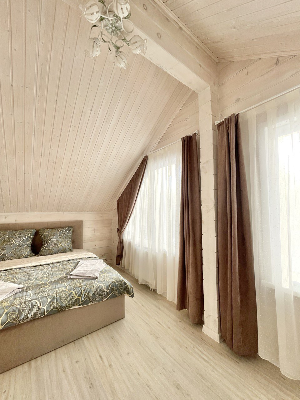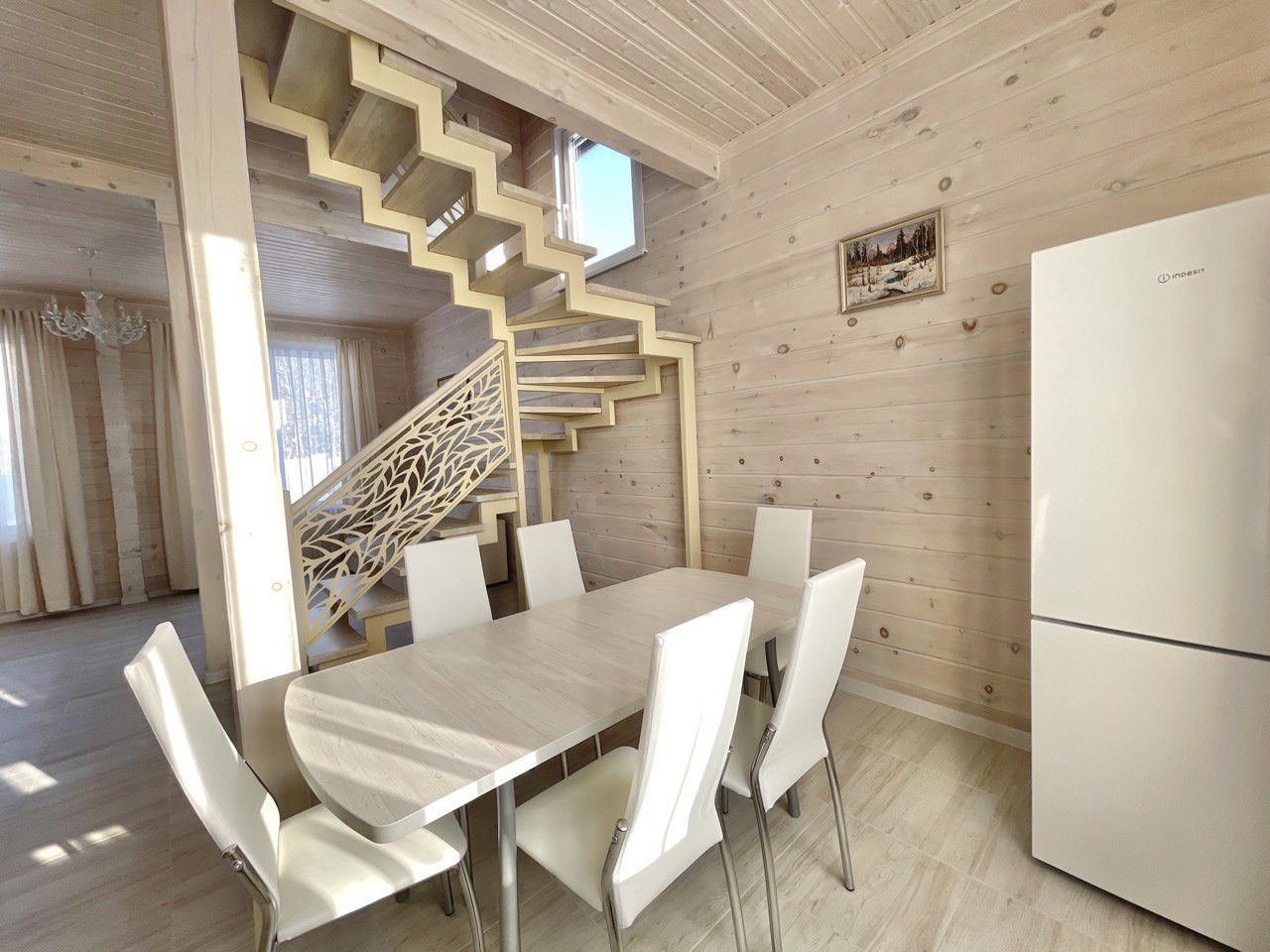 Дом в двух этажах: на первом этаже расположена просторная светлая кухня-гостиная, санузел а на втором этаже две  уютные спальни.