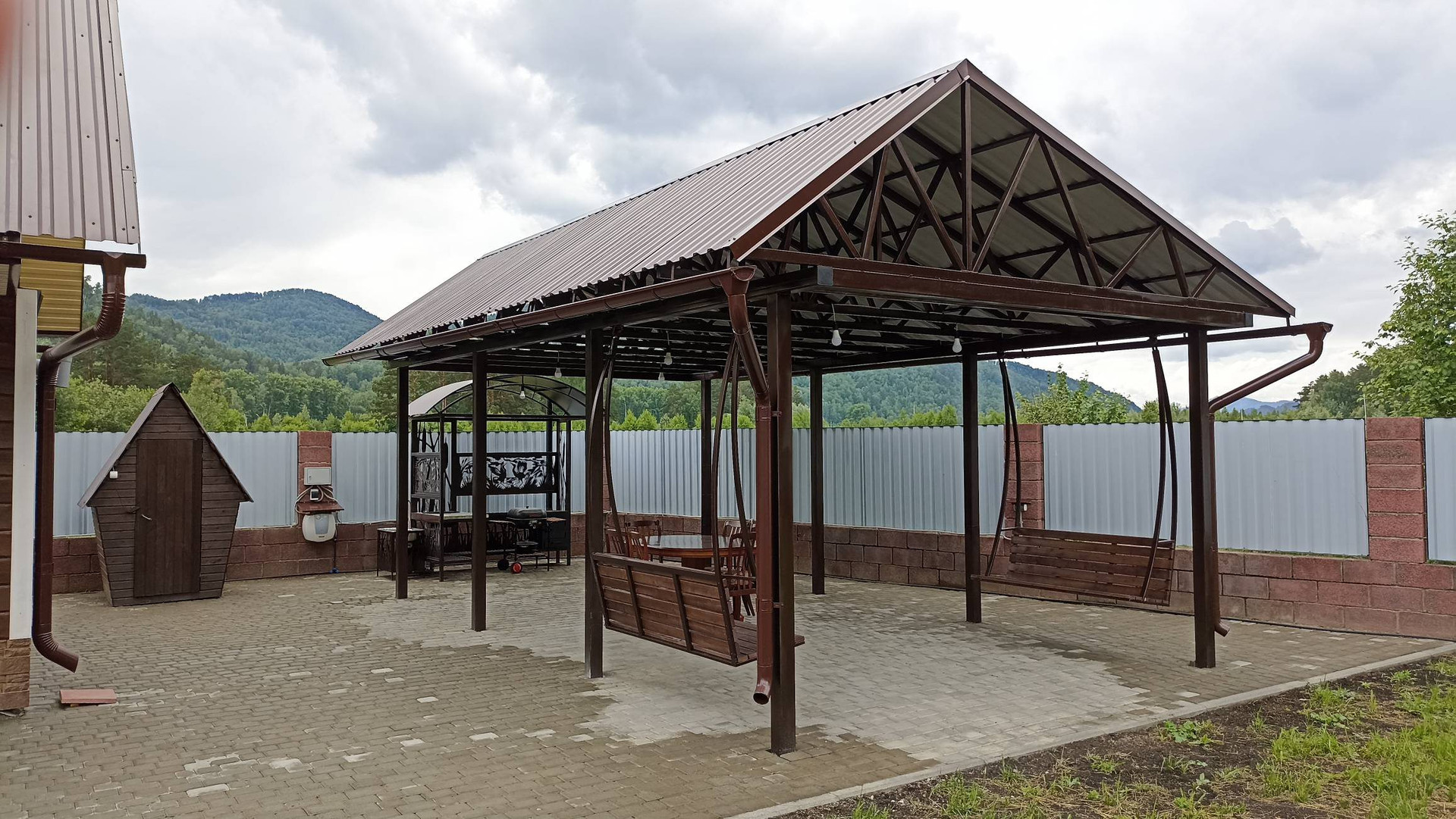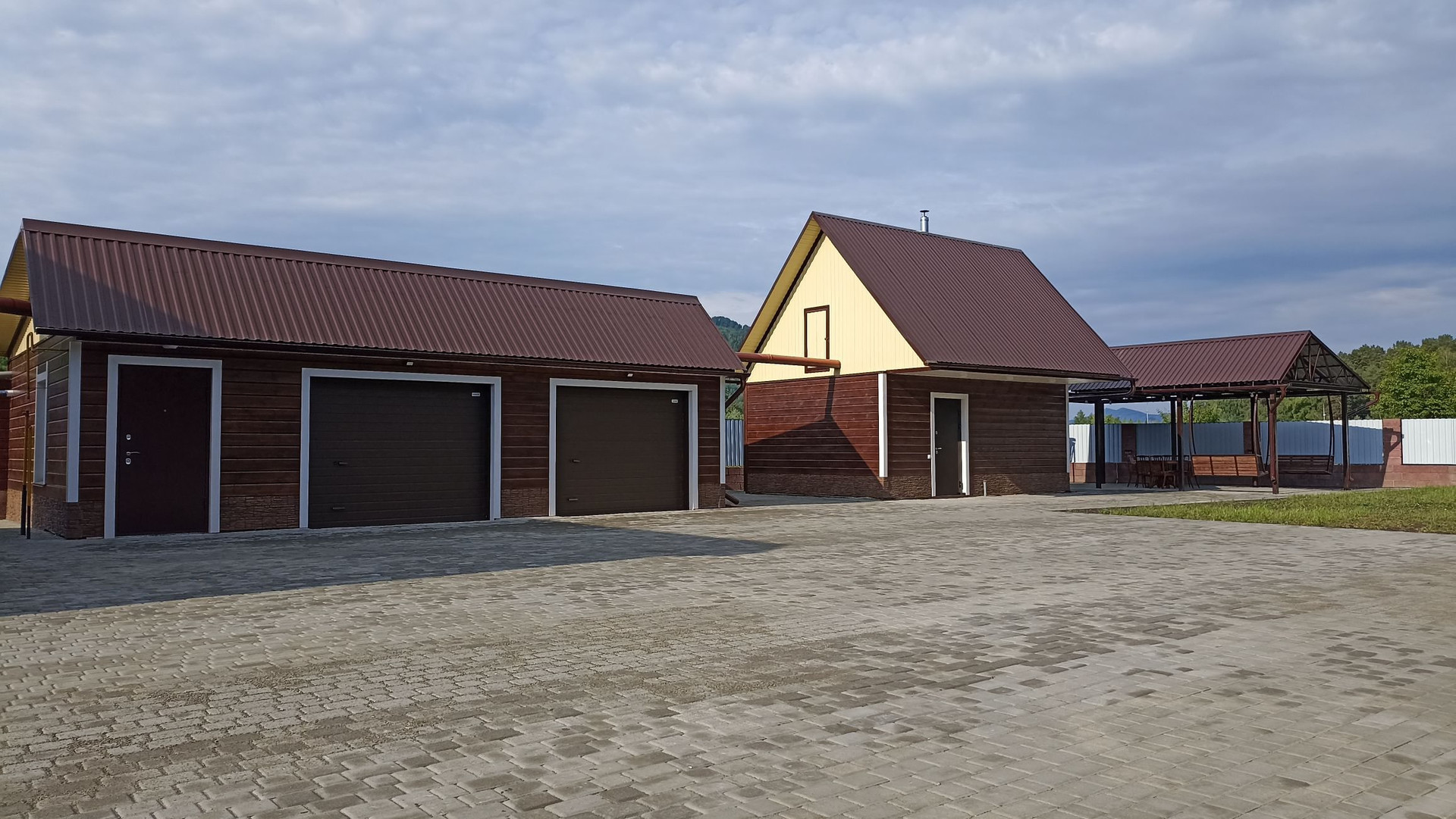 На участке имеется отапливаемая баня c комнатой отдыха (теплый пол), гараж на два автомобиля, газовая-электро котельная а так же есть зона барбекю, терасса с качелями.