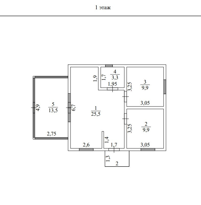 ✓ 3 спальни, 1 сан. узел