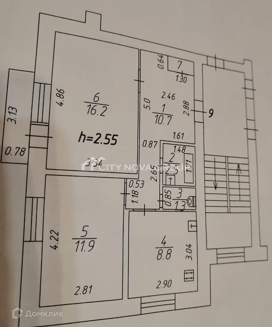 Высота потолков 2.8 м