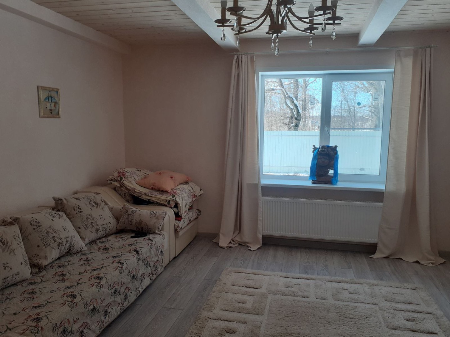 Шторы, карнизы, сантехника в абсолютно новом состоянии.