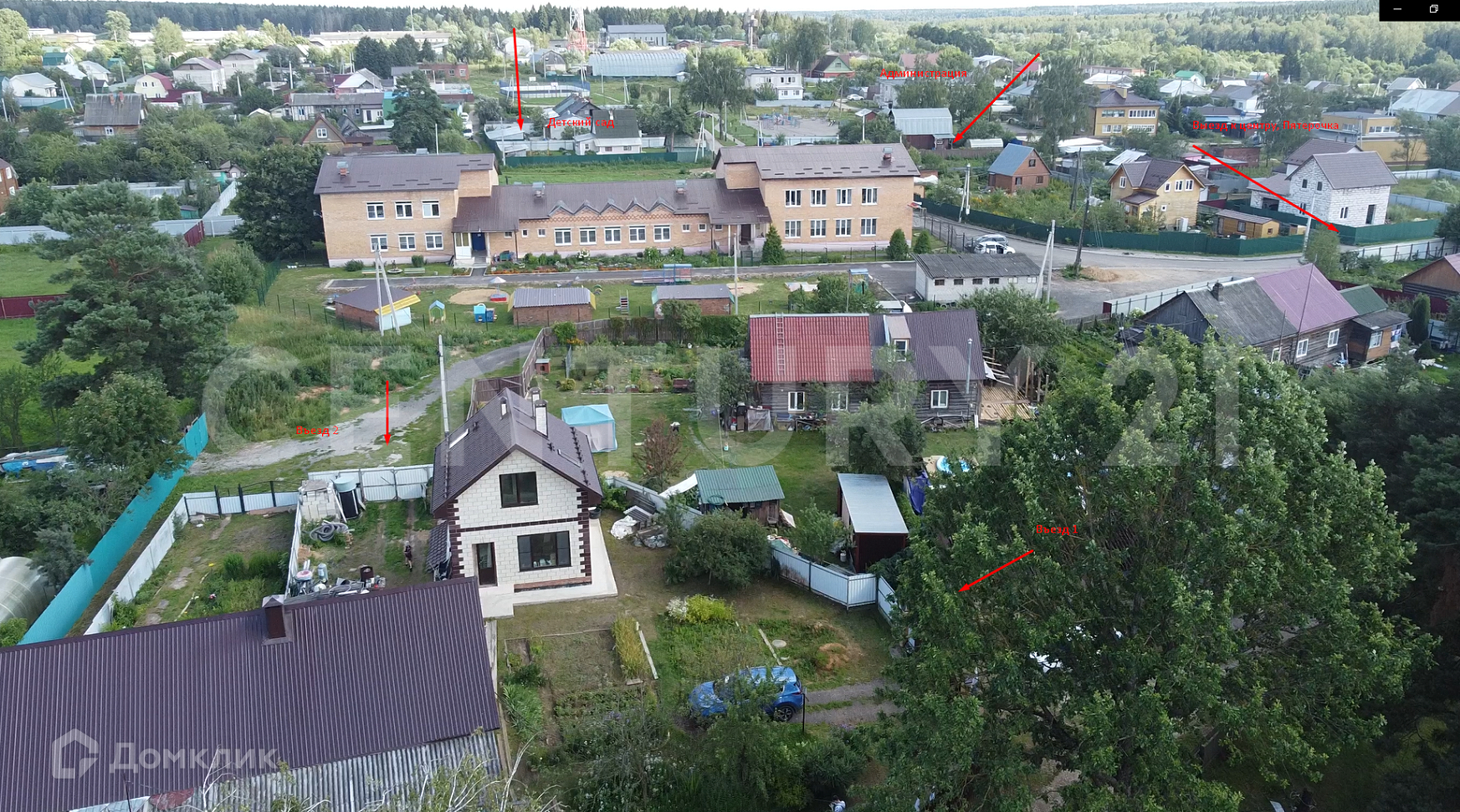 2 въезда на участок с парковкой до 6 легковых автомобилей или 2-3 коммерческих. 3 калитки: одна выходит в центр, к пятерочке, вторая к детскому саду и администрации города и третья к озеру.