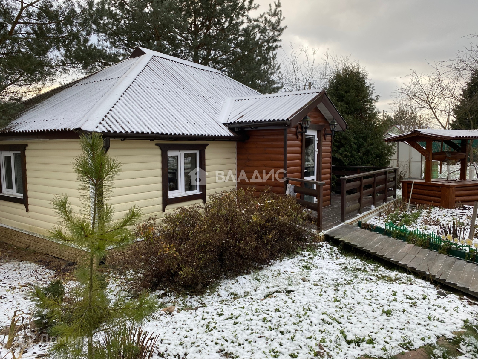 - дом одноэтажный 43 м.кв из бревна с каркасной пристройкой, кровля ондулин, фундамент свайный (спальня, гостиная, кухня, с/у с душевой кабиной, предбанник, окна ПВХ)
