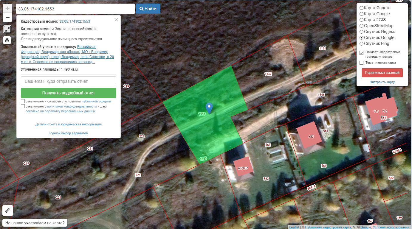 Продаю земельный участок, местоположение : Владимирская область МО г. Владимир (городской округ) с. Спасское ул. Новая Сторонка. К-Н 33:05:174102:1553