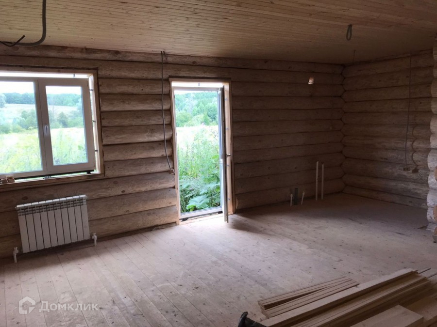ПРОДАЕТСЯ АБСОЛЮТНО НОВЫЙ ДОМ из рубленого бревна в с. Сpeднee Дeвятoво Лаишeвского рaйoна!!  Дом общей площадью 87 кв.м., три спальни, большая кухня-гостиная 28,5 кв.м. с видом на лес!!! Есть веранда и терраса!!