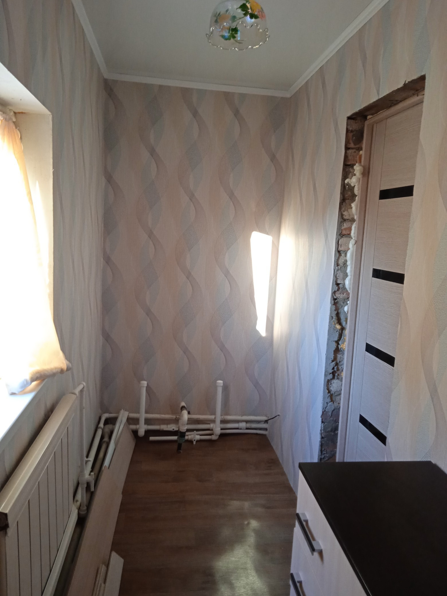 Заповедная зона. Дом и кухня находятся на участке 30сот,.Газ, скважина, электричество, интернет, канализация-септик. Дом- 39.2, 4 комнаты-6,6; 8,8;13, 4;10,3; кладовая-8,6; совмещённый санузел-4, 4; 2 коридорчика-3,6 и 1,5+ котельная-1,5.1960г.постройки из шлакоблока, облицован сайдингом и плиткой, пластиковые окна. Кухня-2021г., 50кв.м., окна пластиковые, полы плитка, ламинат, тёплые полы. Сама кухня-столовая-15кв. м, коридор-6м, санузел-6м. под чистовую отделку, комната-20м. -под обои, натяжной потолок; кладовка-гардероб-4м. Со стороны двора- гараж, подвал, сараи, несколько выходов на огород, садочек(ремонтантная малина, крыжовник, жимолость). Часть огорода под люцерной и клубникой(2вида), чёрная смородина. Часть под молодым садом(груша, абрикос, сливы, черешни, вишни, чернослив, яблони, 2ореха-все плодоносит. Есть летний душ с подогревом+насосная+ёмкость для полива. На территории участка есть отдельно стоящие сараи и гараж. В 2021 г. положен новый асфальт вдоль участка, 150м.до водоёма(есть место для рыбалки) , 50м.до магазина и автобусной остановки. До райцентра Волоконовка-3 км. Рассмотрю всё варианты оплаты.