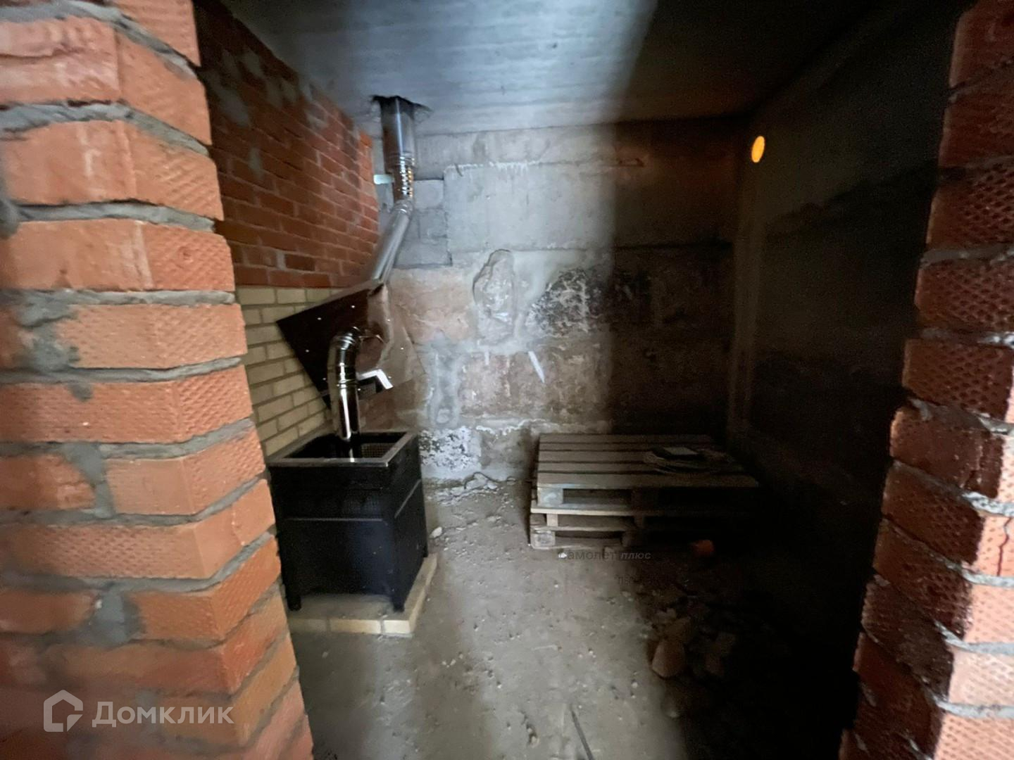 В бане дорогая банная печь и трубы дымохода из толстостенной нержавейки.