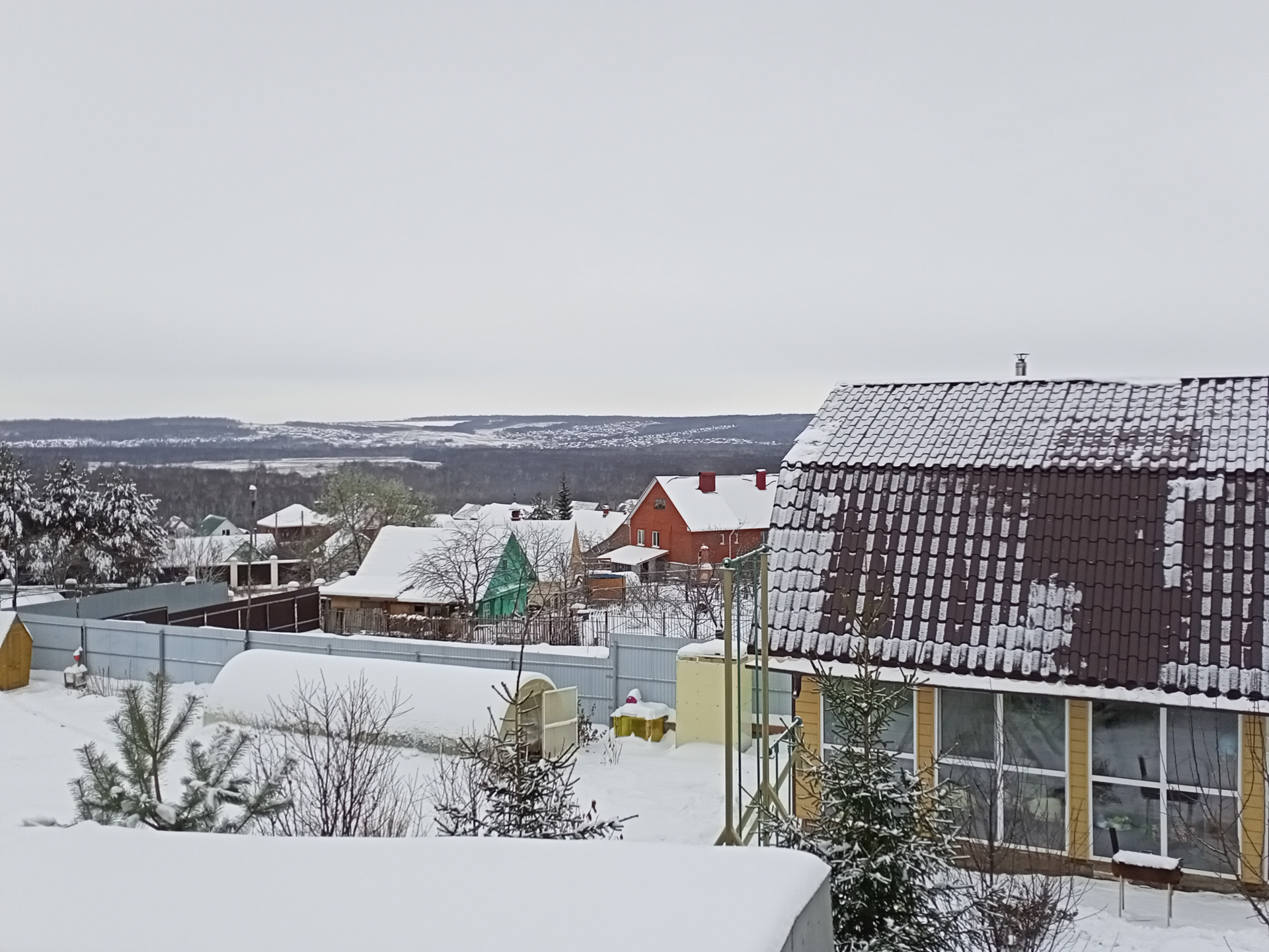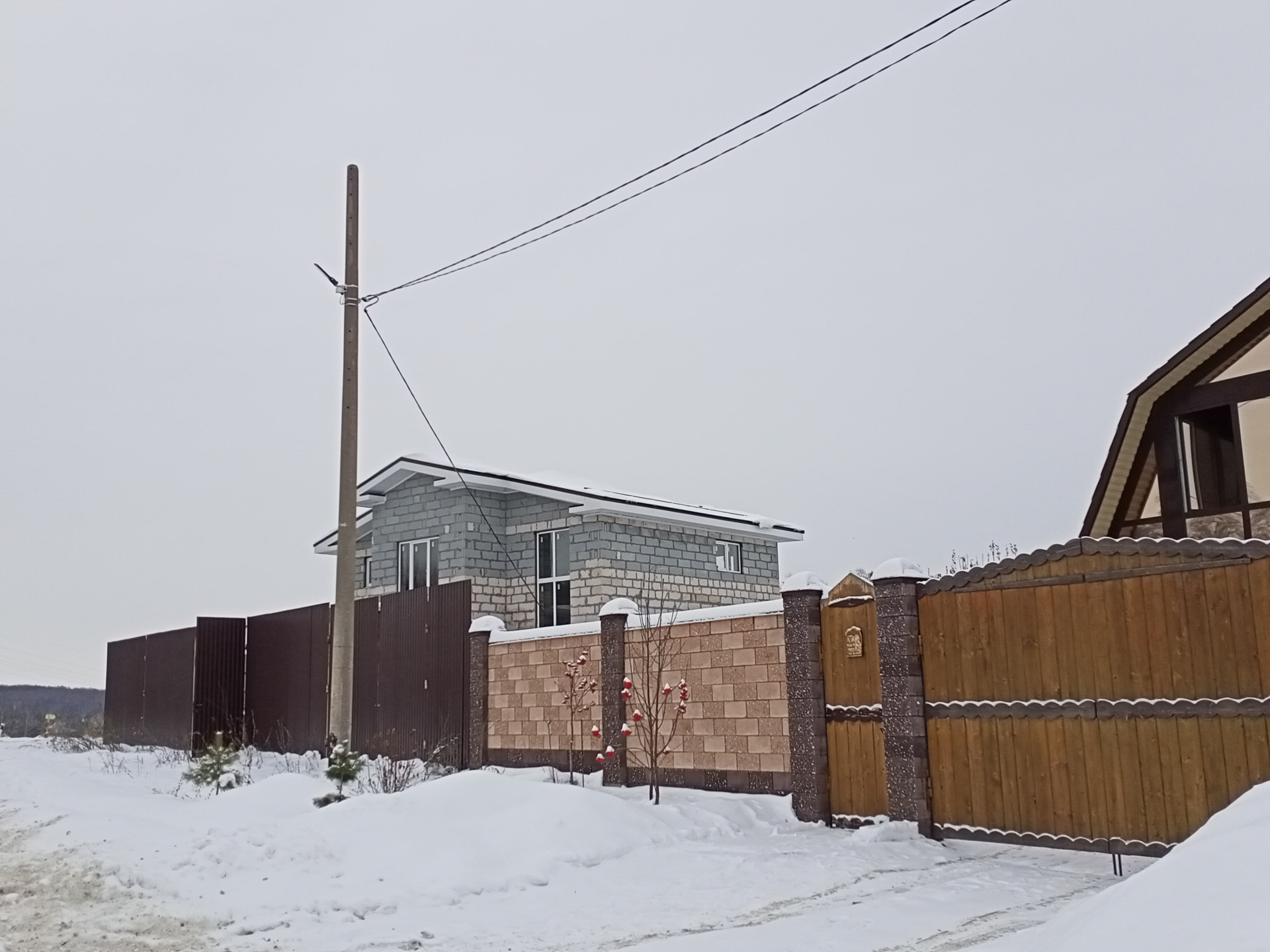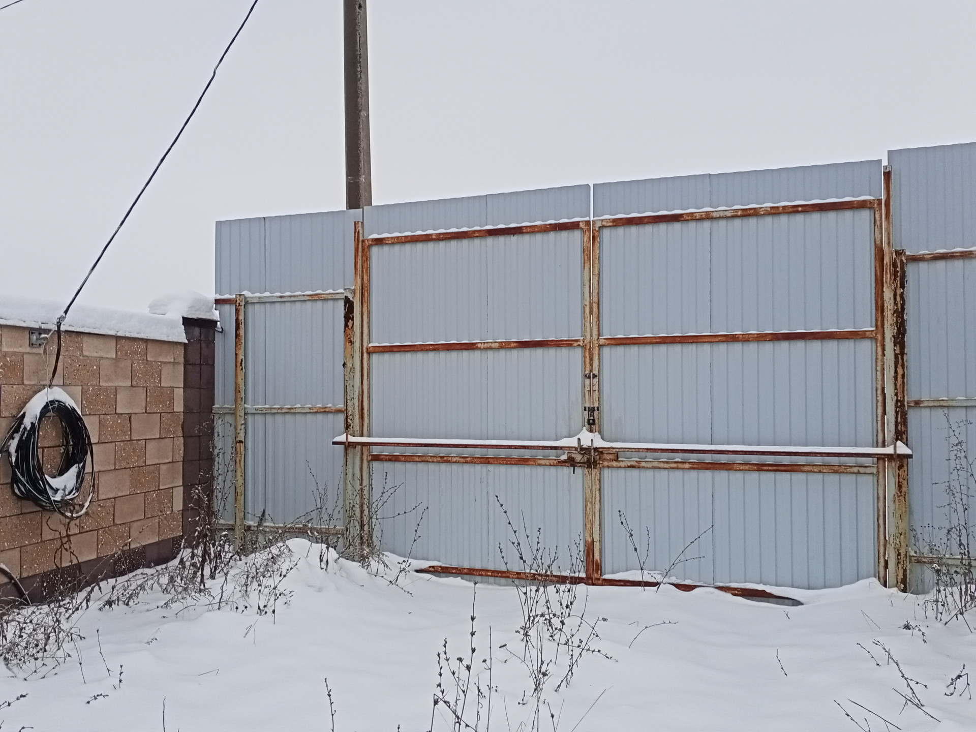 удобно для подъезда ассенизатора. Забор высотой 3м из металлопрофиля, двое ворот для заезда машин во двор.