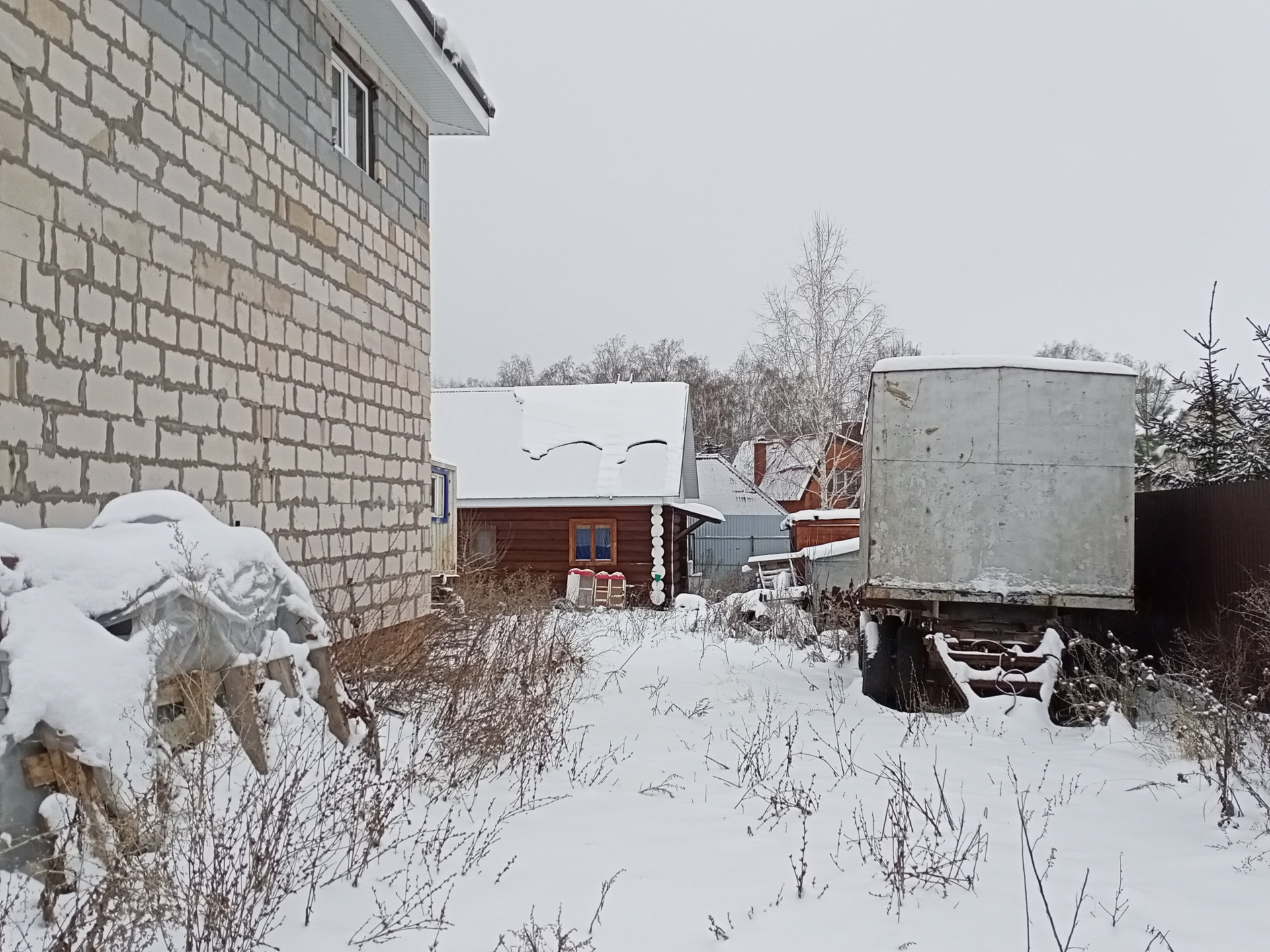 метал. гараж, вагон для хознужд, два шамбо - отдельно на дом, на баню, пожарный подъезд,
