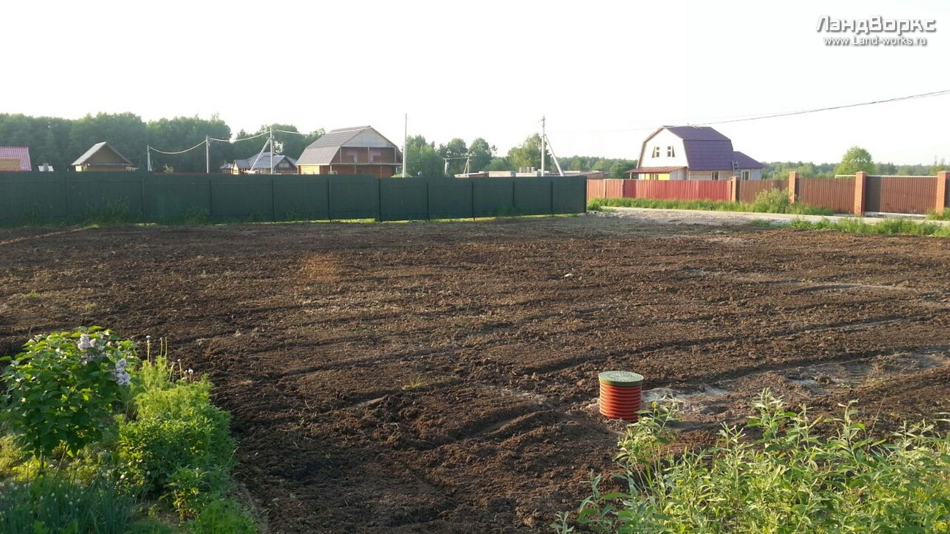 участок ровный в середине деревни.