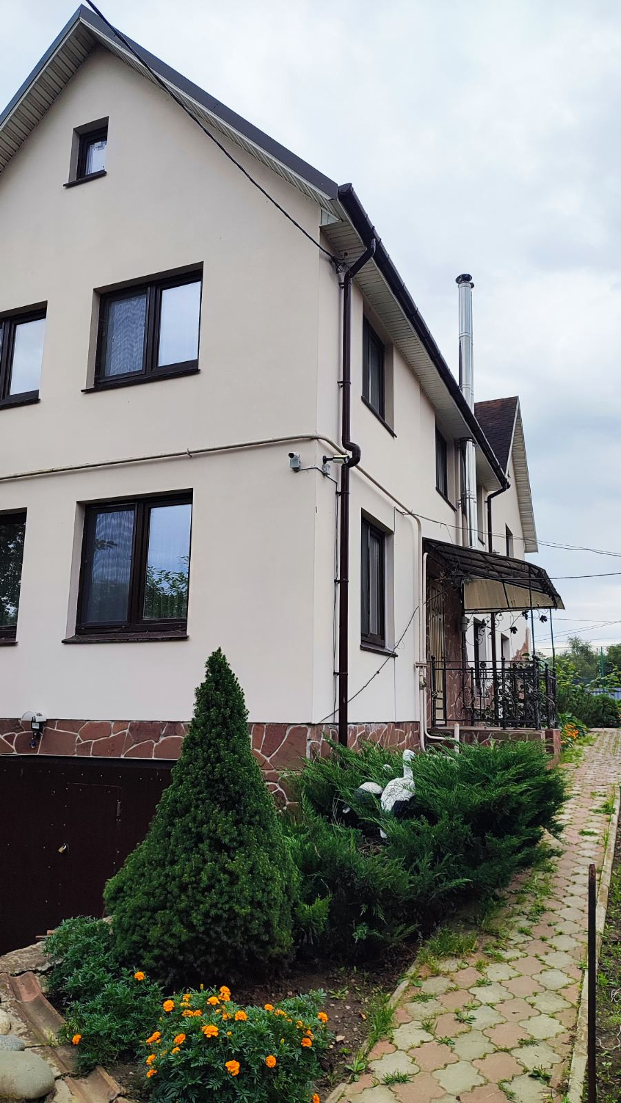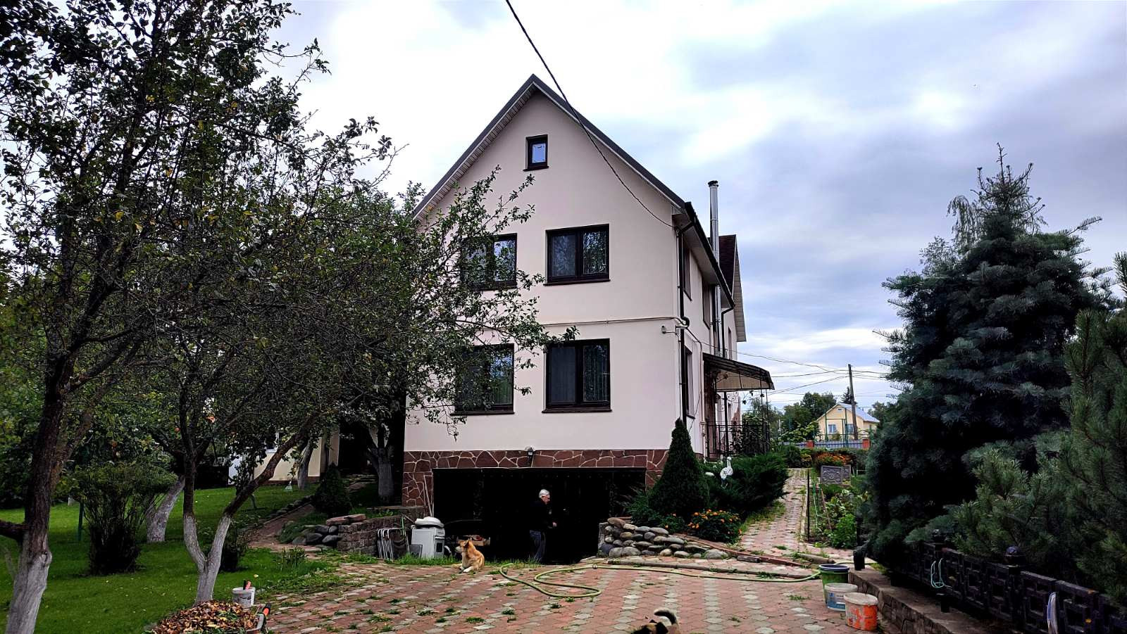 Большой, уютный, полностью готовый дом для круглогодичного проживания, в деревне, где есть вся инфраструктура- школа, детсад, магазины.В доме два жилых этажа, на первом этаже- кухня-столовая, гостиная, комната. санузел, на втором- две спальни и детская или кабинет, санузел. Везде импортная  деревянная мебель,  вся бытовая техника. Подземный этаж-гараж, погреб. На участке имеется оранжерея- капитальное строение ,  для круглогодичного выращивания растений, с подсветкой и отоплением, теплица, баня, птичий двор, площадка спортивная- выровненная, подушка из песка и гравия.Навес для трёх машин.Ухоженный участок, клумбы, плодовый сад. Газ магистральный, вода, канализация.