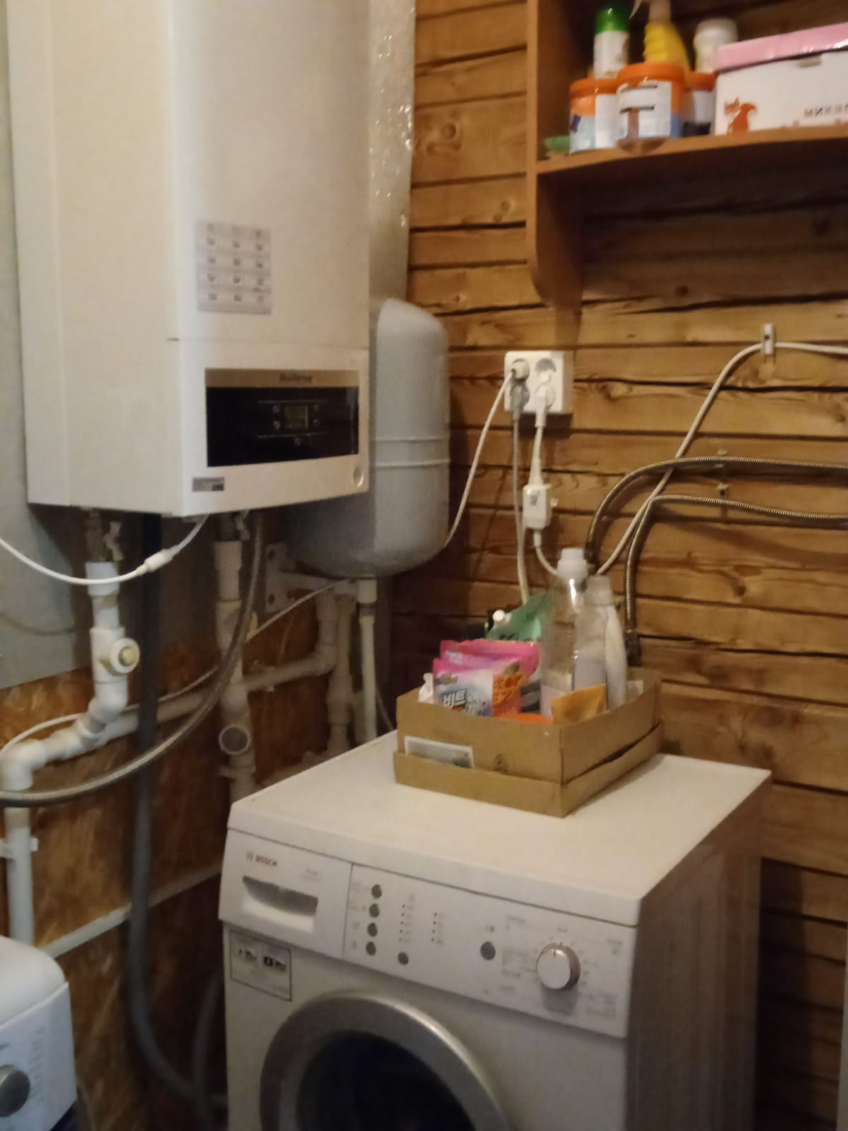 Дом выполнен из бруса (140х140). Фундамент ленточный. Электроснабжение от поселковой сети 220в. Газ - магистральный. ГВС - от газового котла.