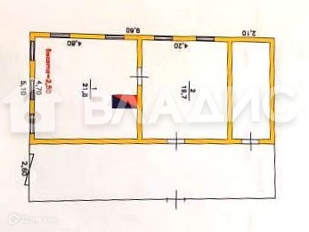 Площадь комнаты: 21.8 кв.м.