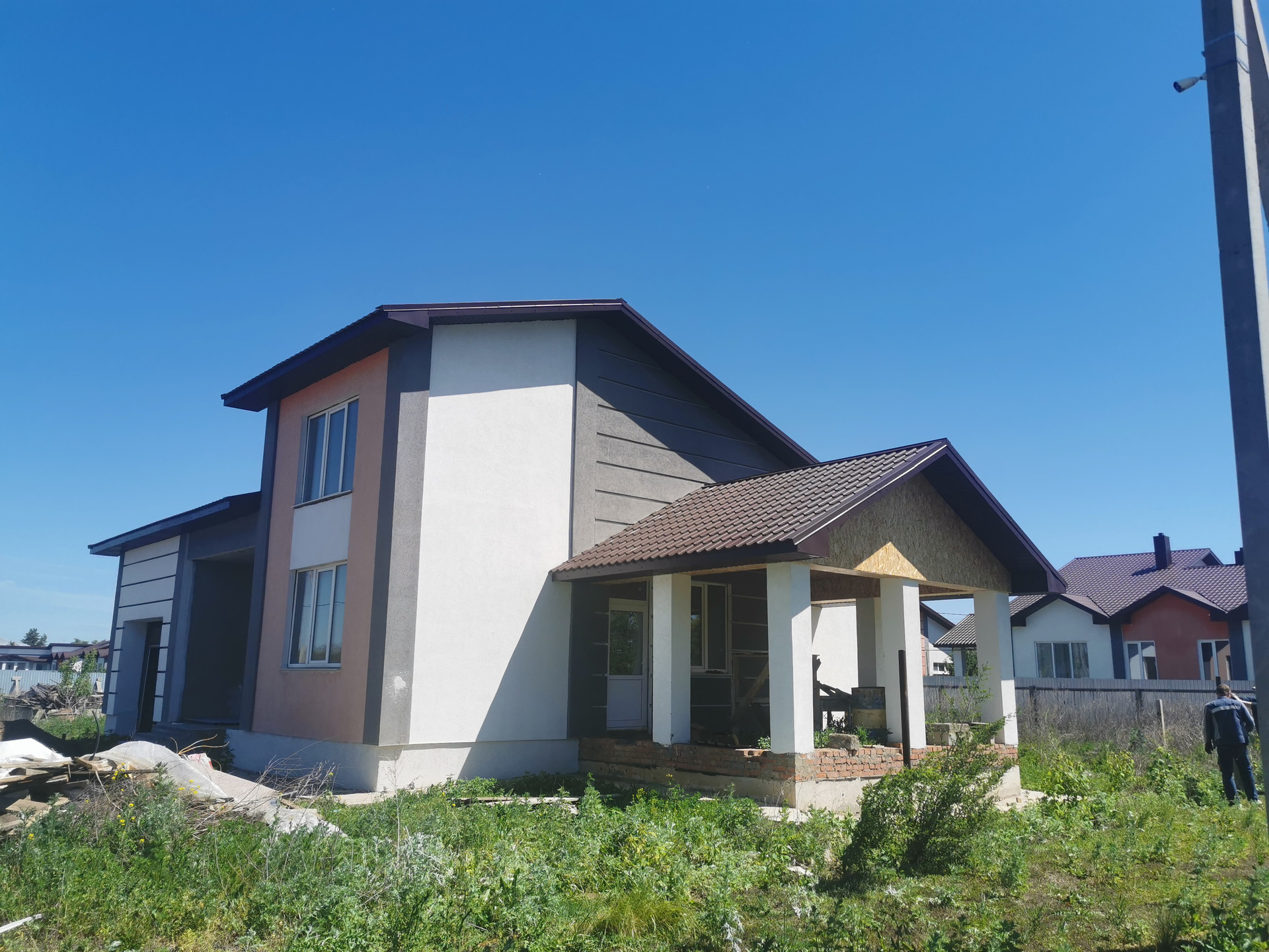 Дом продается с предчистовой отделкой, будет установлен отопительный котел, газ в доме, входная дверь, ступени, подъезд к гаражу бетонная стяжка, чернозем на участке,забор (только столы с ростверком).