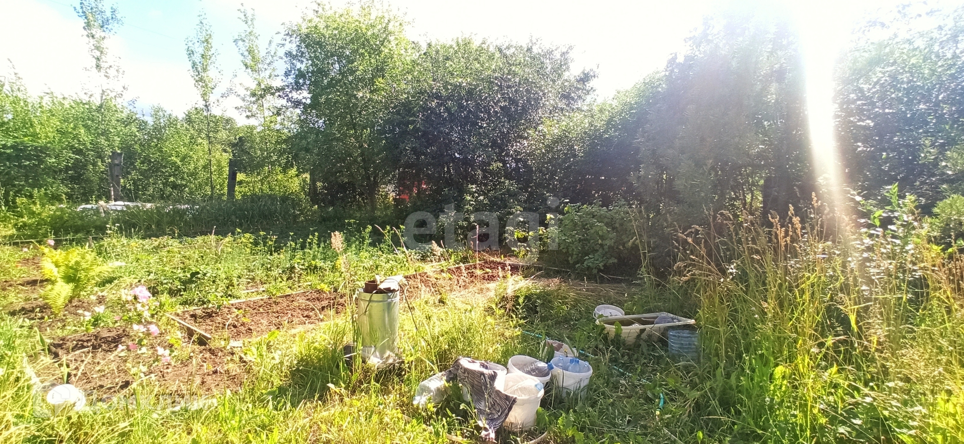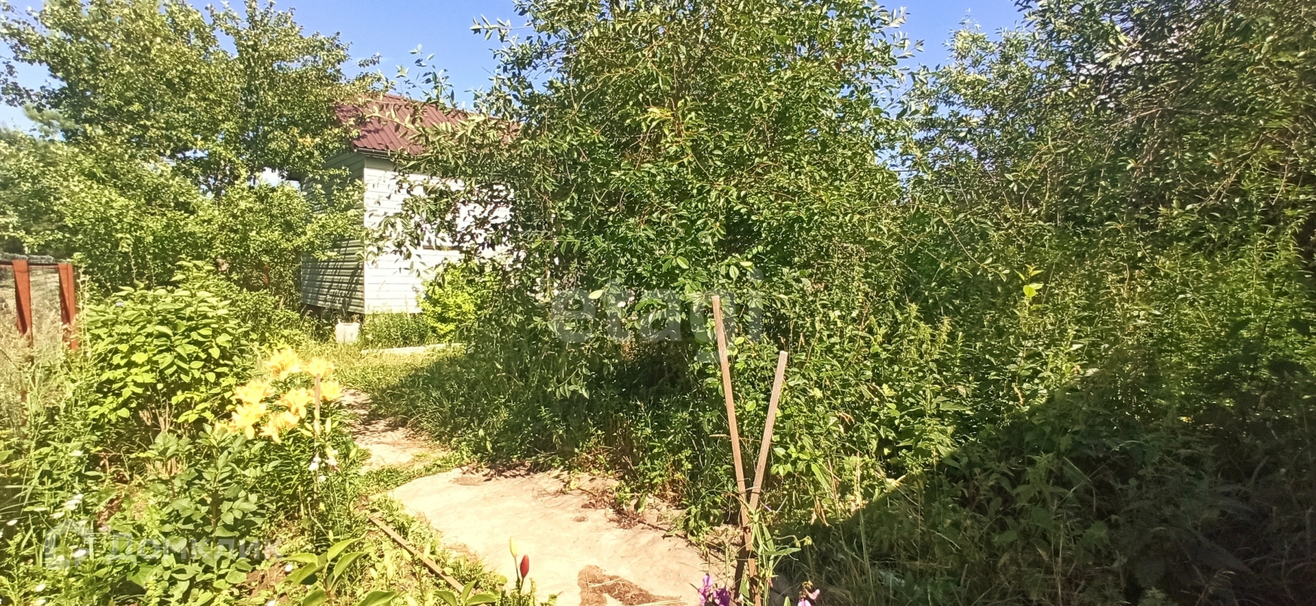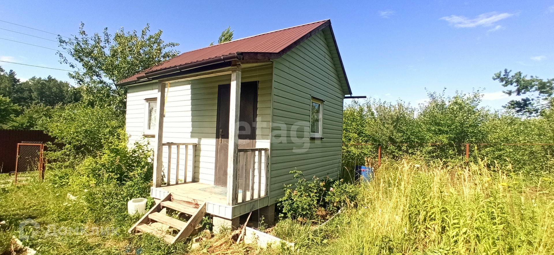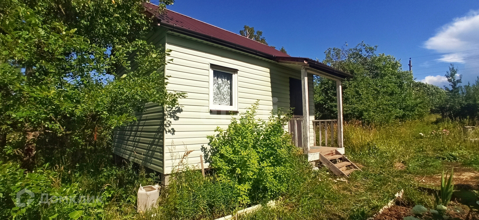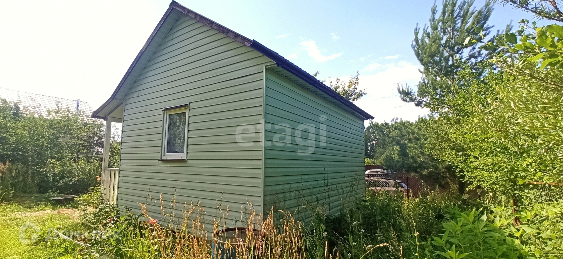 Сам домик новый, построен по каркасной технологии с утеплением стен, обшит сайдингом и вставлены пластиковые окна, стоит металлическая дверь. На территории участка есть своя скважина с чистейшей водой, парник с пластиковыми дугами 6*1.2 метра, надувной бассейн 1.9*0.5 метра, бочка 200л для полива. Участок разработан, почва суглинок, растут: яблони 3шт, груша 1шт, вишня 7шт, облепиха 3шт, крыжовник 4 куста, смородина красная 1 куст и чёрная 3 куста, сортовая малина вдоль забора, а так же многолетние цветы и декоративные кустарники. На даче остается вся мебель, инвентарь и техника.