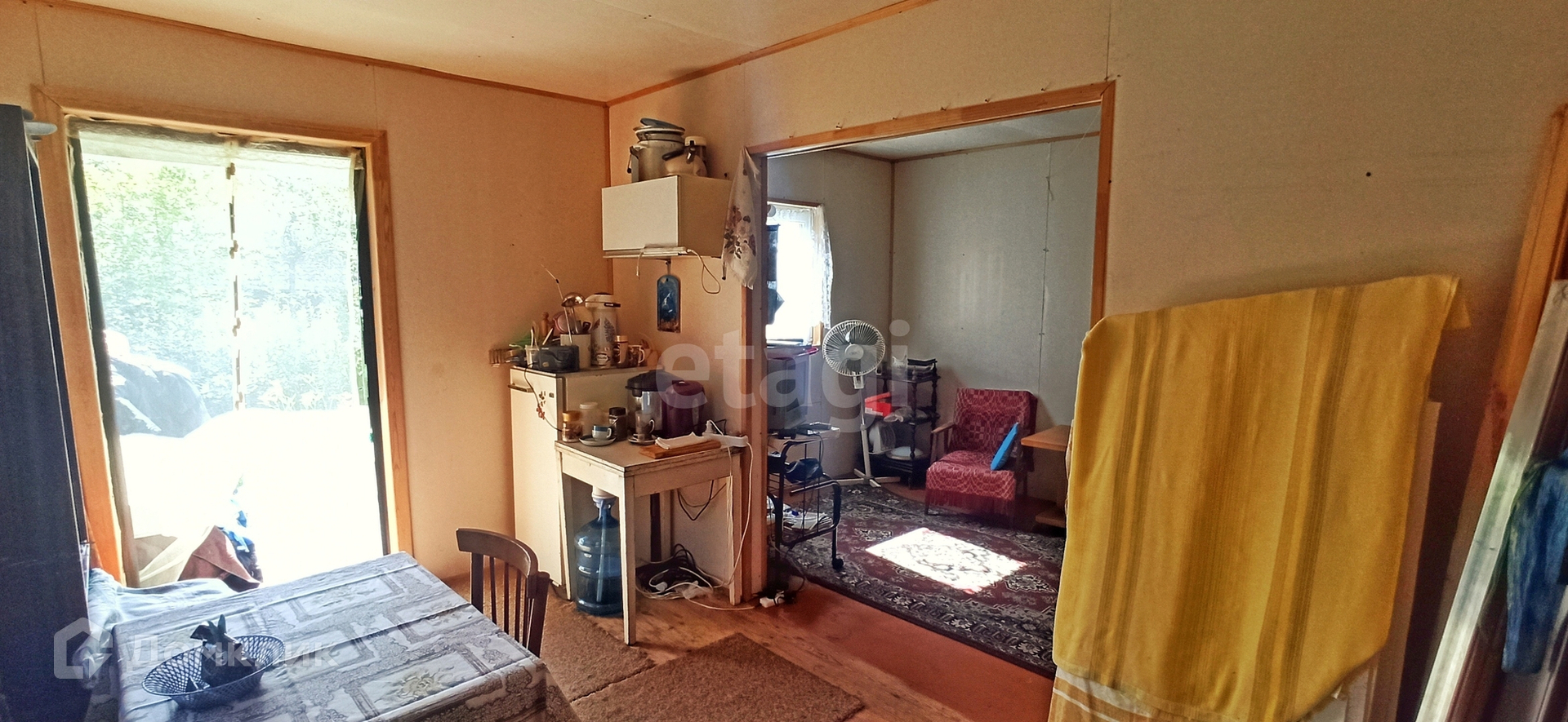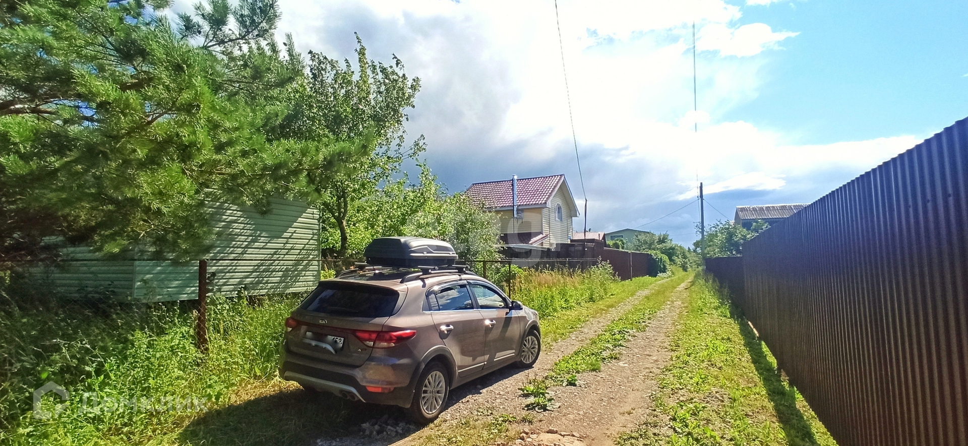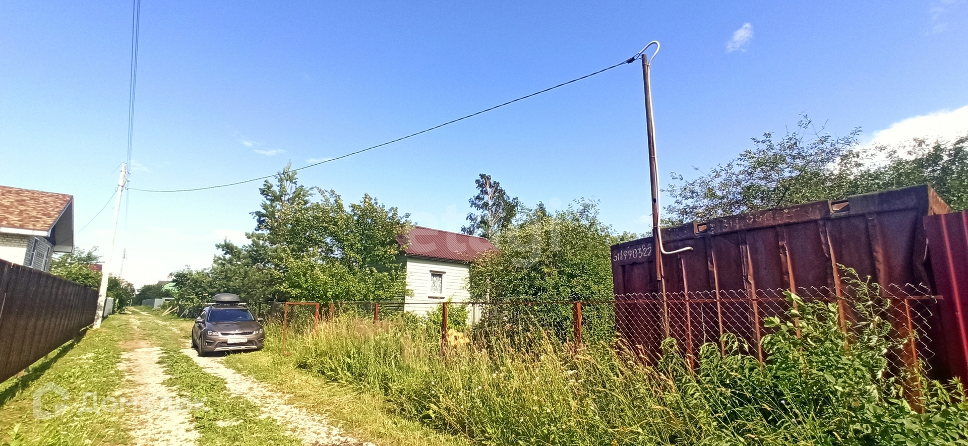Имеется место для парковки машины и подъездные пути с двух сторон участка. На участке имеется металлический контейнер 3т, сарайка и уютный двухкомнатный домик с крыльцом.