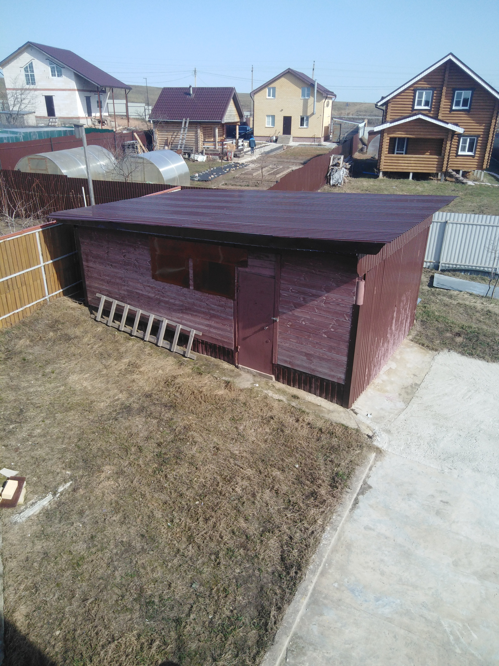 Участок - 11 соток, огорожен забором из профнастила, ровный, имеется теплица, сарай для хоз. инвентаря, дровенник. посажены молодые плодовые деревья. Перед домом построен гараж. Своя скважина, септик.