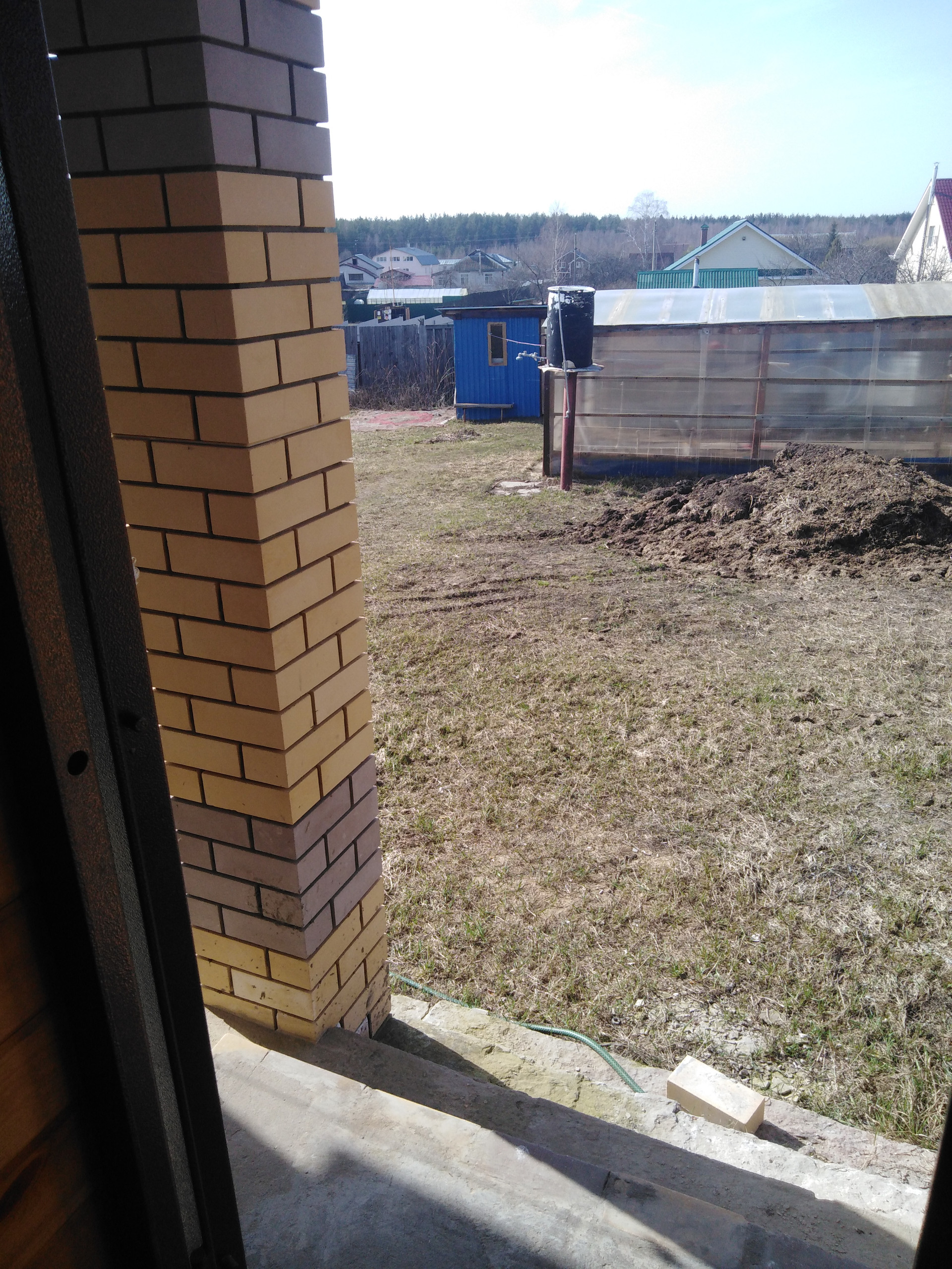 Дом свежей постройки, фундамент блоки и залита плита, стены силикатный кирпич, отмостка и вход в дом залиты бетоном, стены и пол и потолок обшит ОСП плитой.