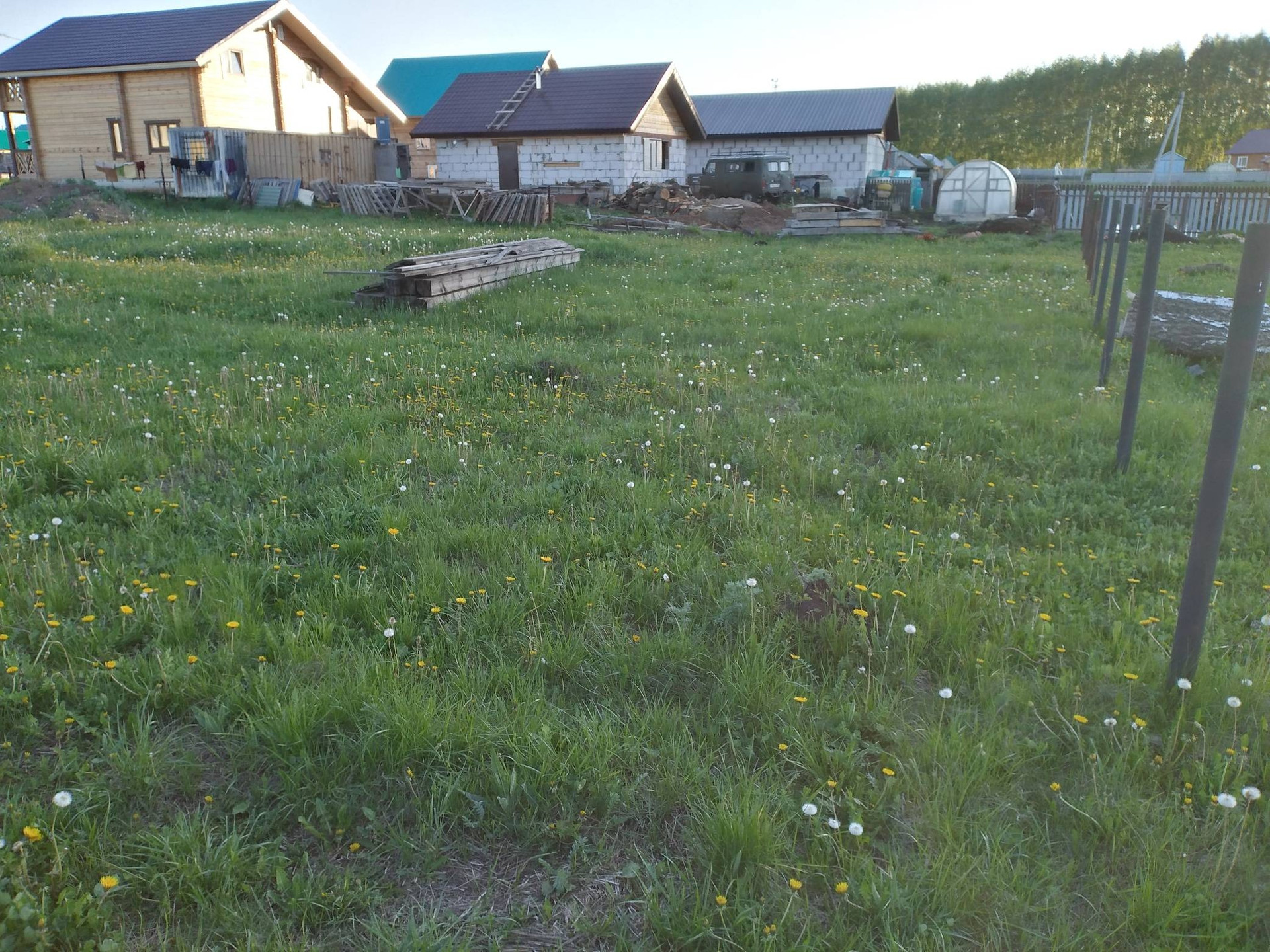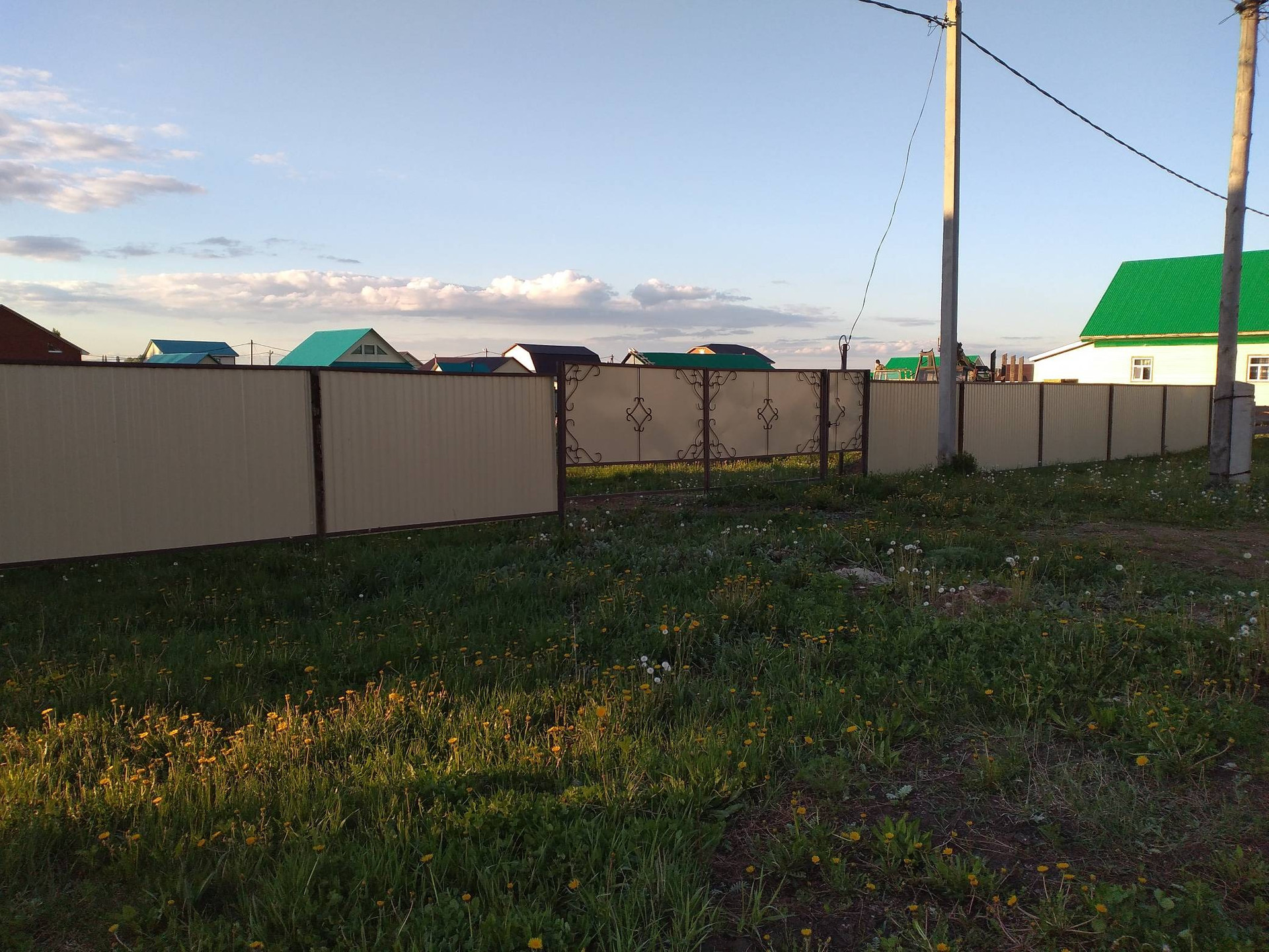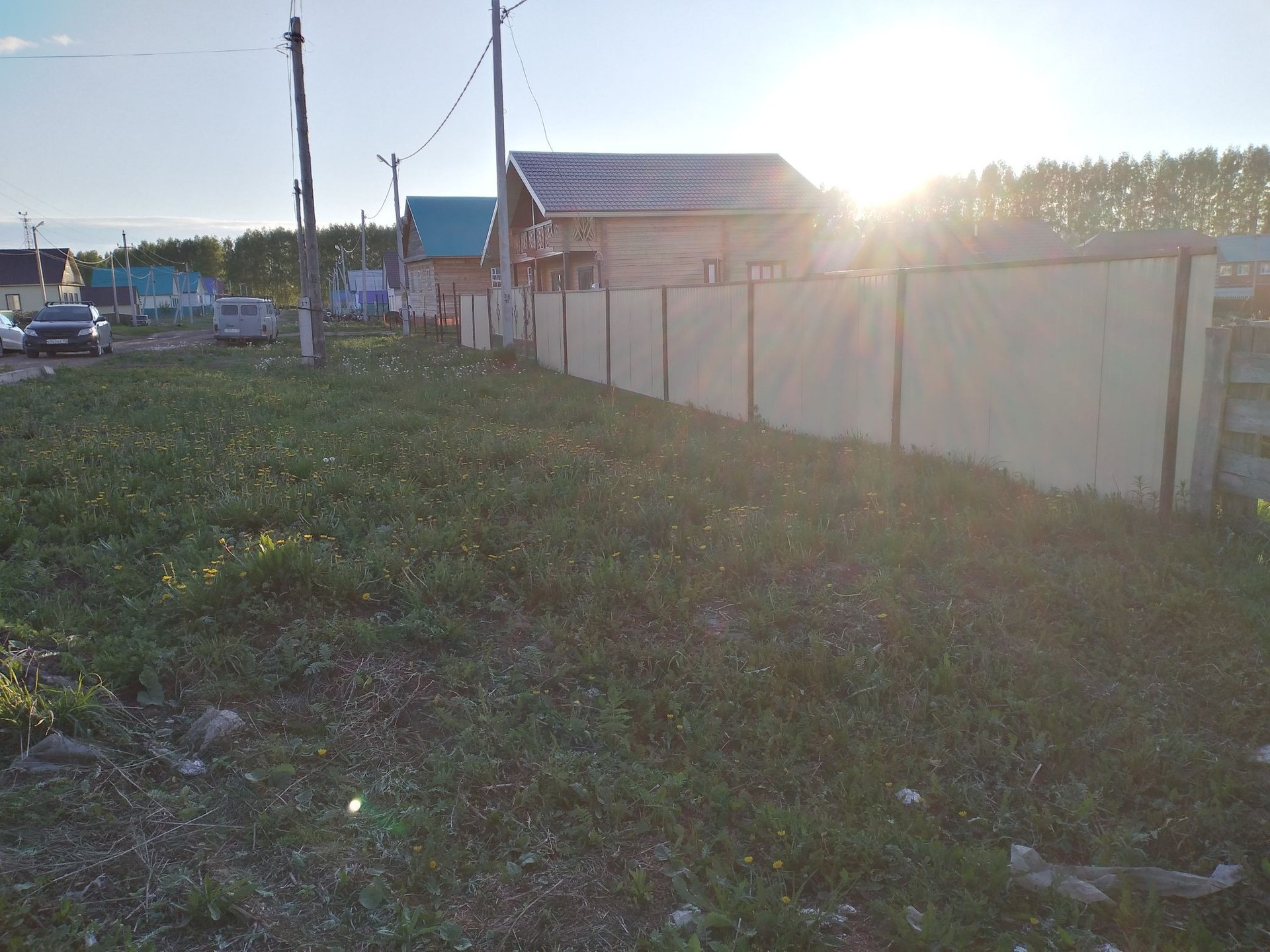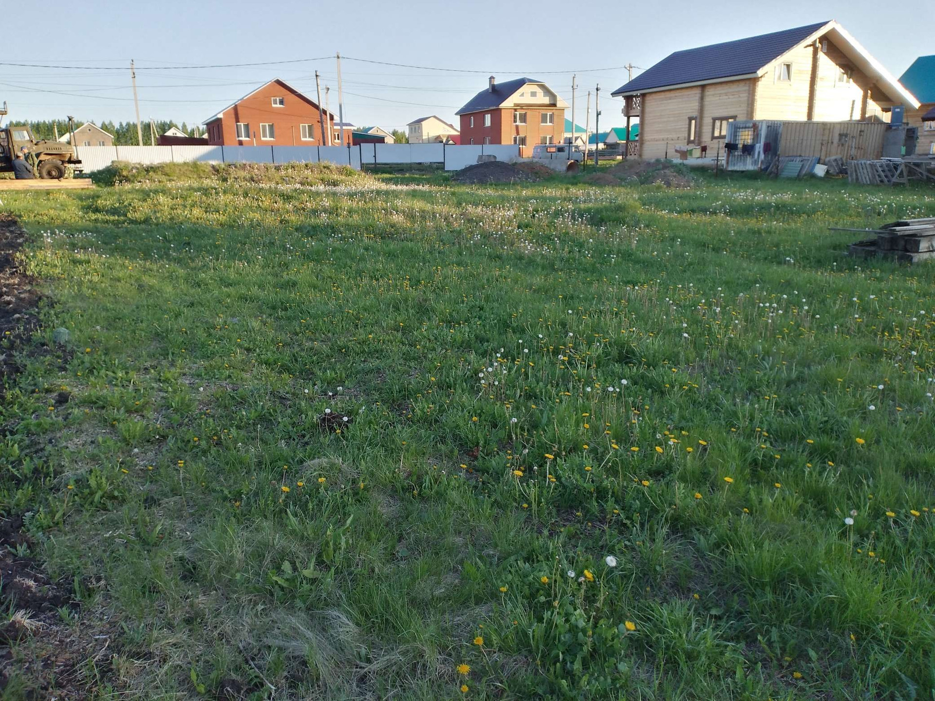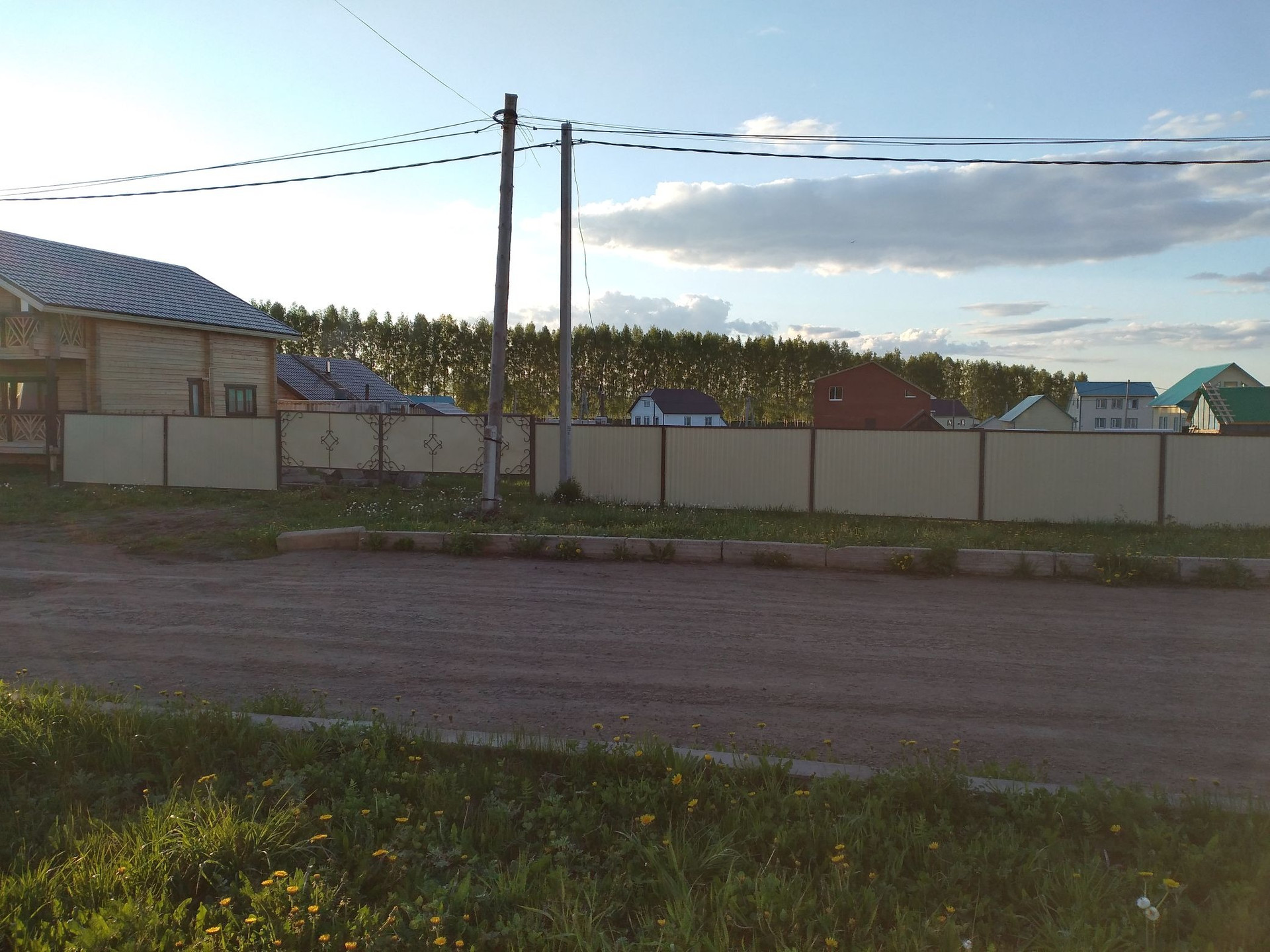 Перед участком асфальтированная дорога, электричество есть, вода газ проходят перед участком. На участке под дом земля выравнена, чернозем снят, и отсыпано ПГС.