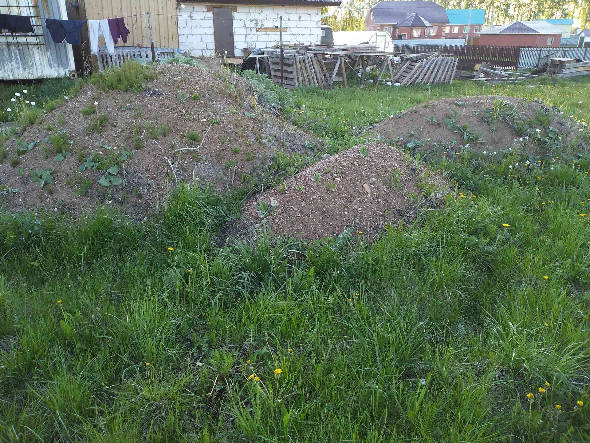 Так же пгс, рыхлый асфальт, песок привезенные несколько горок. Блоки бетонные.