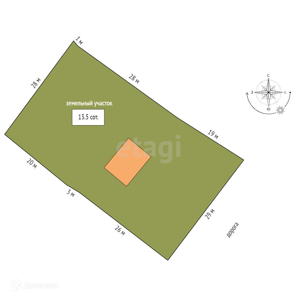 Площадь участка 13.5 сот.