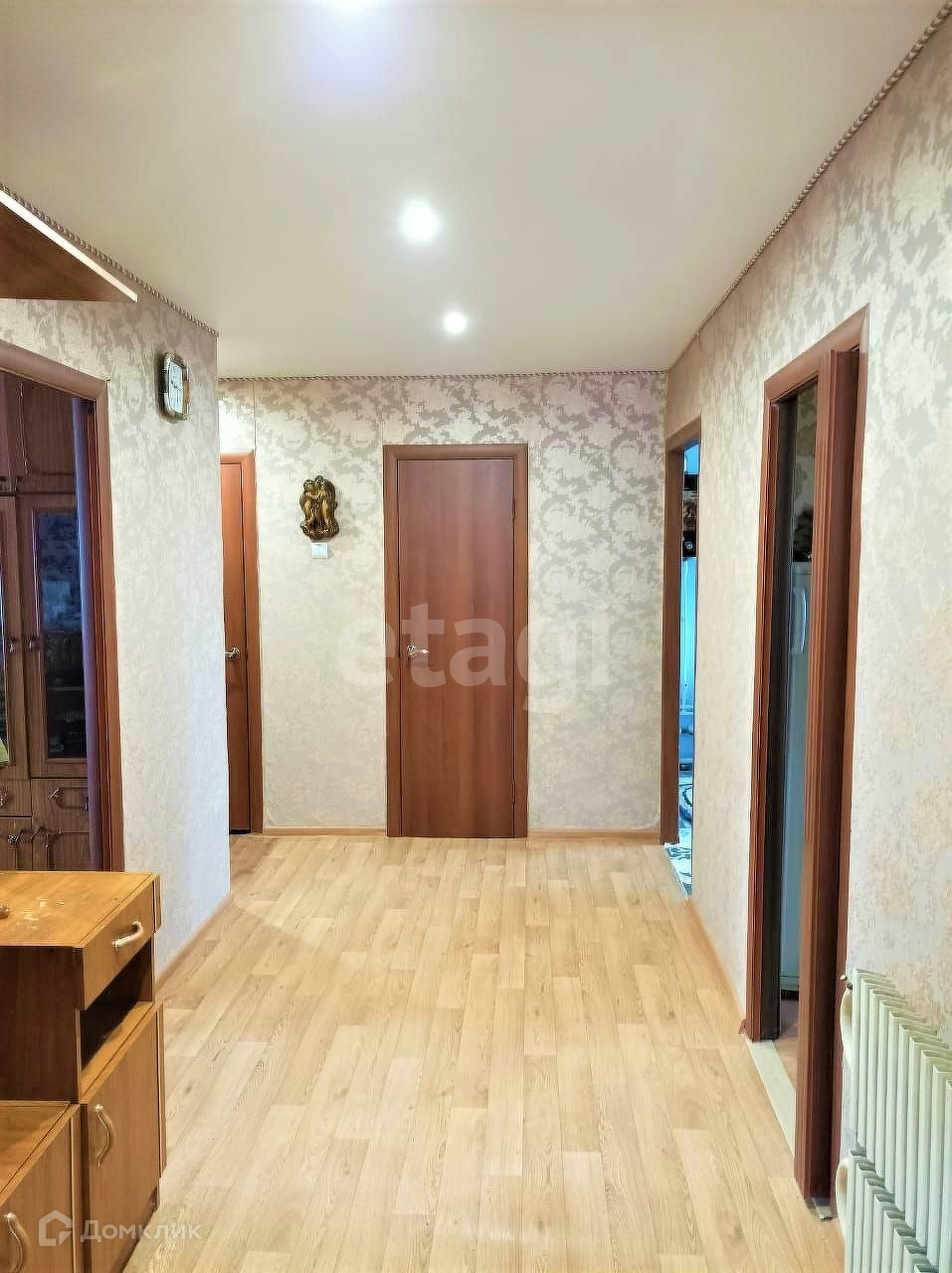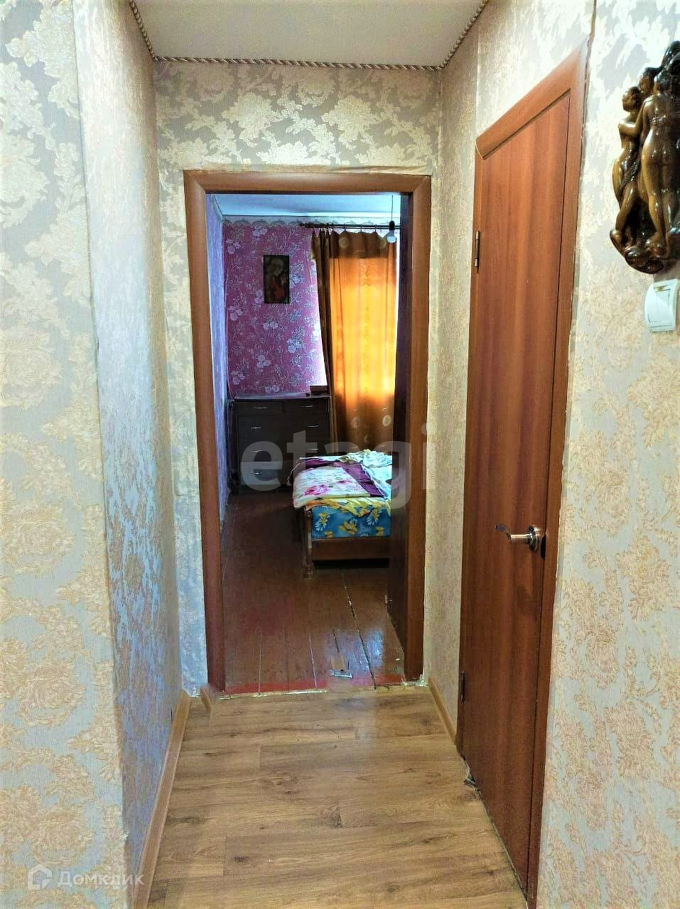 Общая площадь дома 76 м2. Планировка: зал, две спальни, кухня, раздельный санузел, кладовая комната, коридор. В доме сделан хороший косметический ремонт: натяжной потолок, свежие обои, пол залит бетонном, на котором лежит линолеум, деревянные двери, установлены пластиковые окна, входная металлическая дверь. В зимний период отапливается.