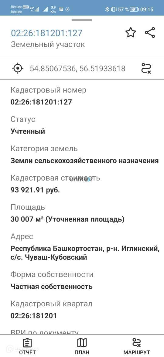 Площадь участка 30 сот.