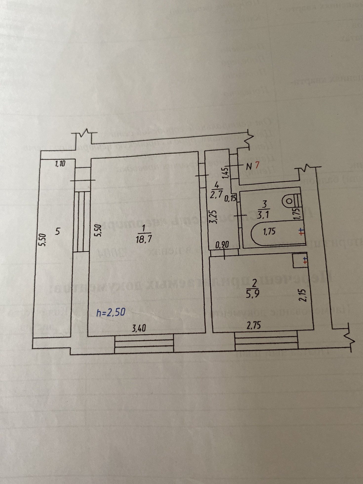 Общая площадь 30.4 м2