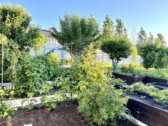 - Разнообразные деревья и растения в саду, включая лиры, ивы, катальпу, ежемалину, сливы, яблони, вишни, черешни, боярышник, клен и персиковые деревья.