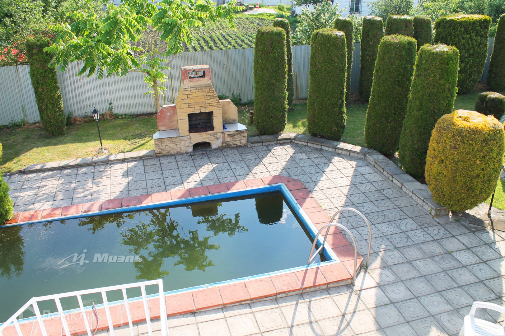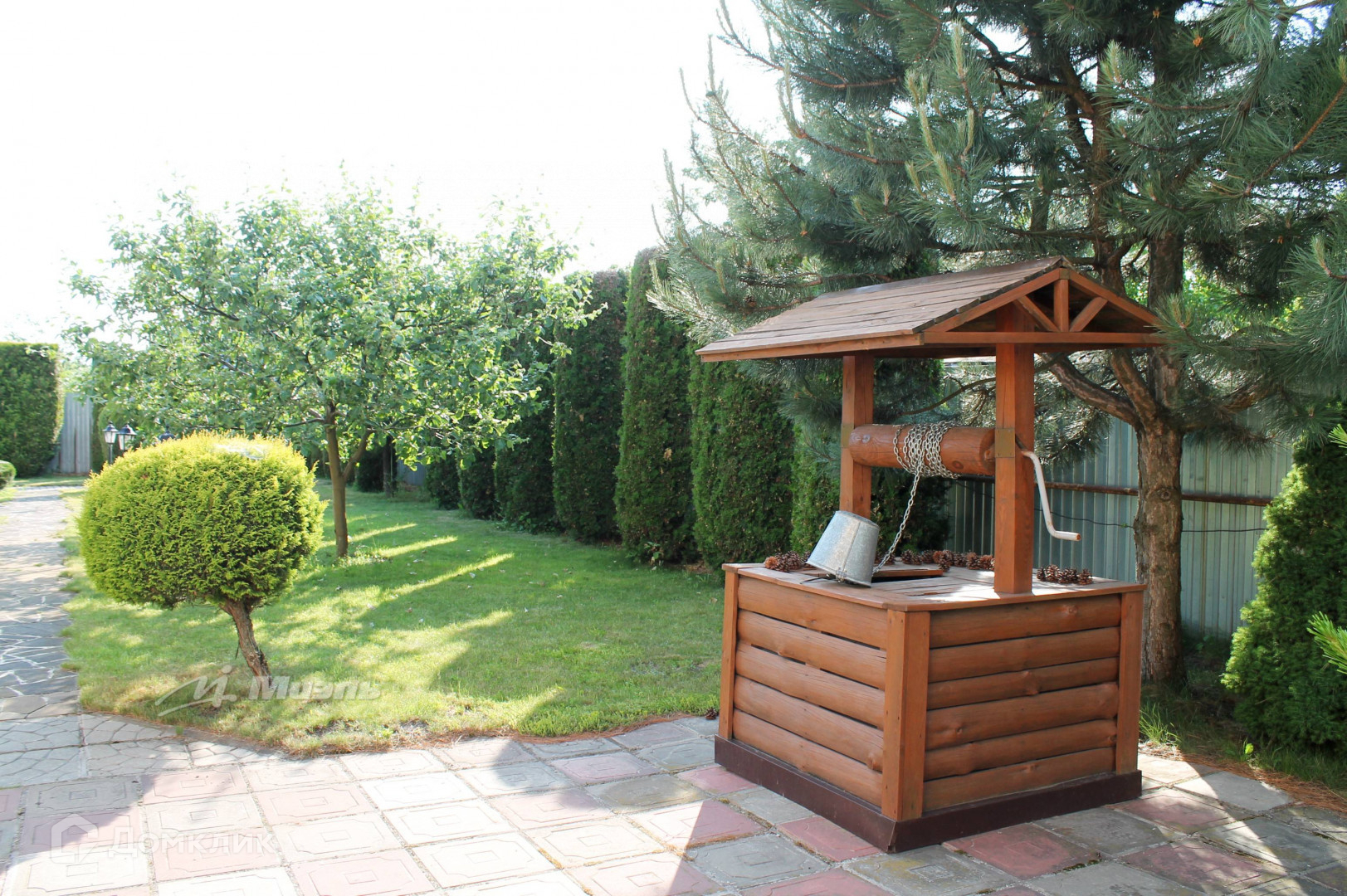 Так же на участке расположен небольшой пруд с кувшинками, бассейн, баскетбольная площадка, бревенчатый колодец, вольер.