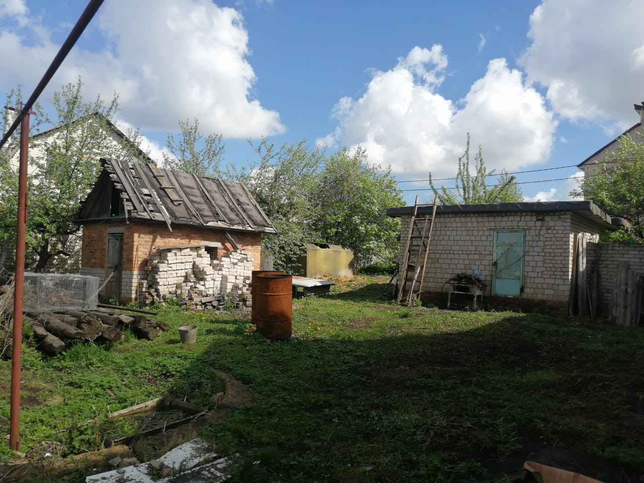 Земельный участок 21 сотка, ровный, прямоугольной формы. На участке летняя кухня 30 кв.м., кирпичная, заведён газ. Также построен кирпичный гараж и сарай.