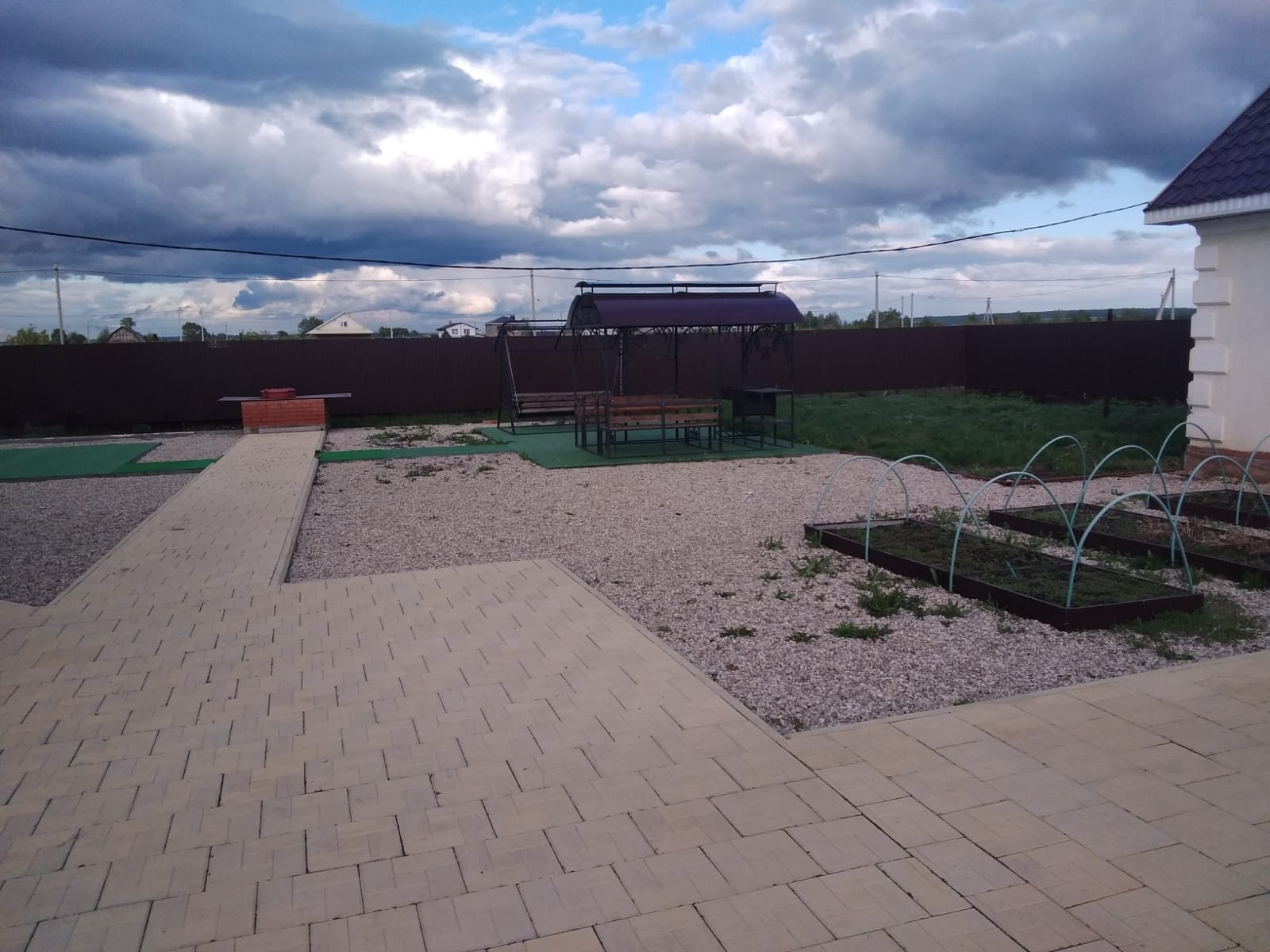 - Зона отдыха (качели, мангальная, шезлонг).