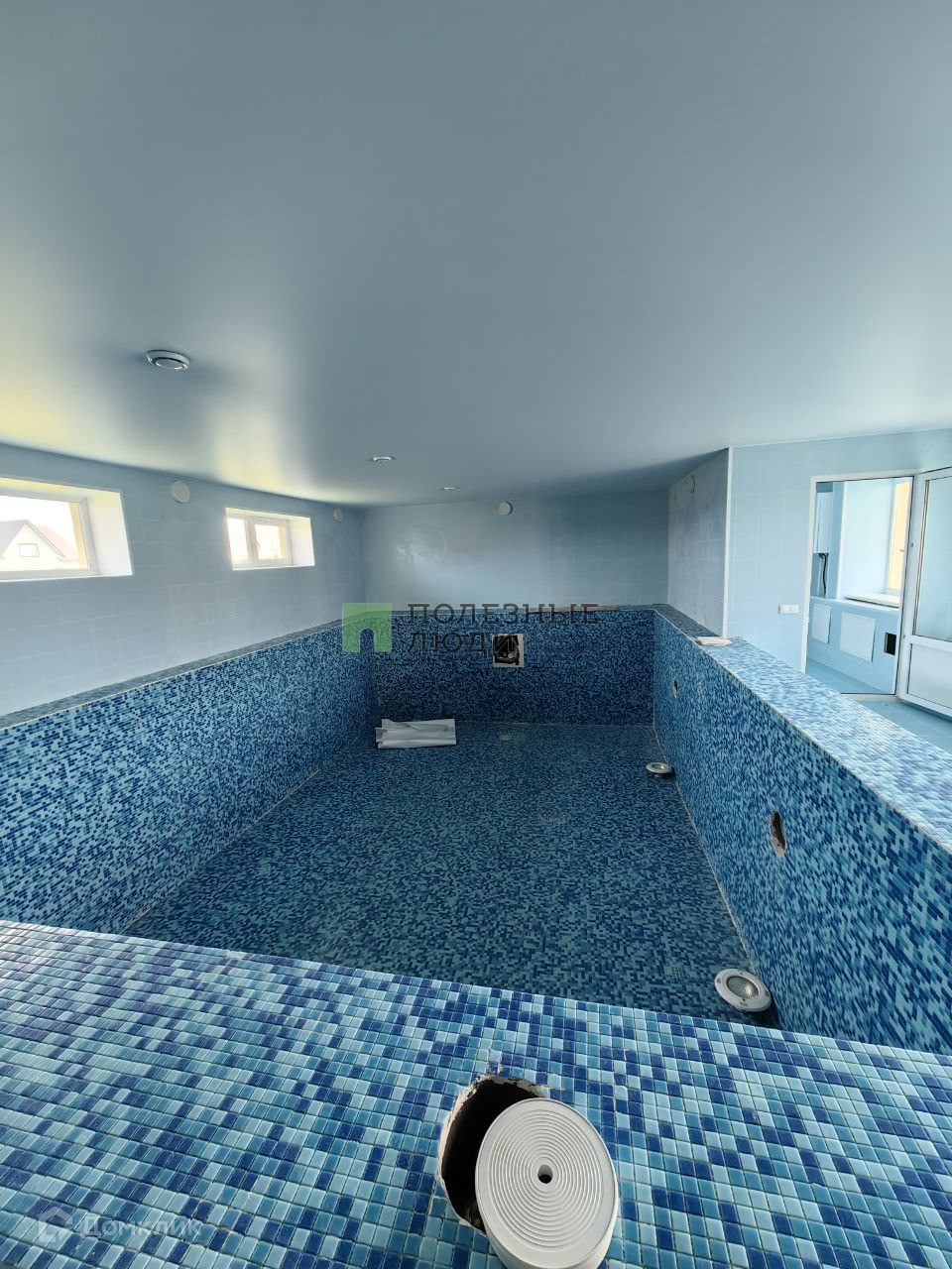 Зал 31 кв.м., кухня 9,7 кв.м.., холл 16,14 кв.м., санузел совмещенный, гараж, котельная, коридор, моечная, парная, санузел с туалет, летняя столовая с витражными окнами с выходом во двор, бассейн площадью 40 кв.м., над бассейном комната 50 кв.м. для бильярда и т.д.
