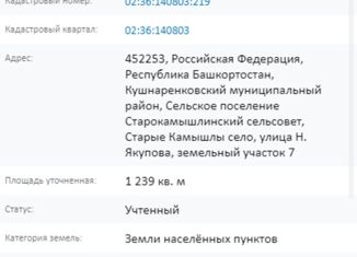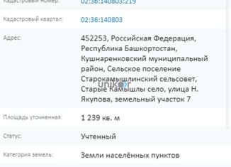 с. Старые Камышлы, кушнаренкоский р-н, 12 соток, ул. Северная 18, рядом озеро ильмурзино, Школа, Детский сад, участок ровный, улица застроена, электричество, газ по улице, круглогодичный подъезд. 02:36:140803:501, |