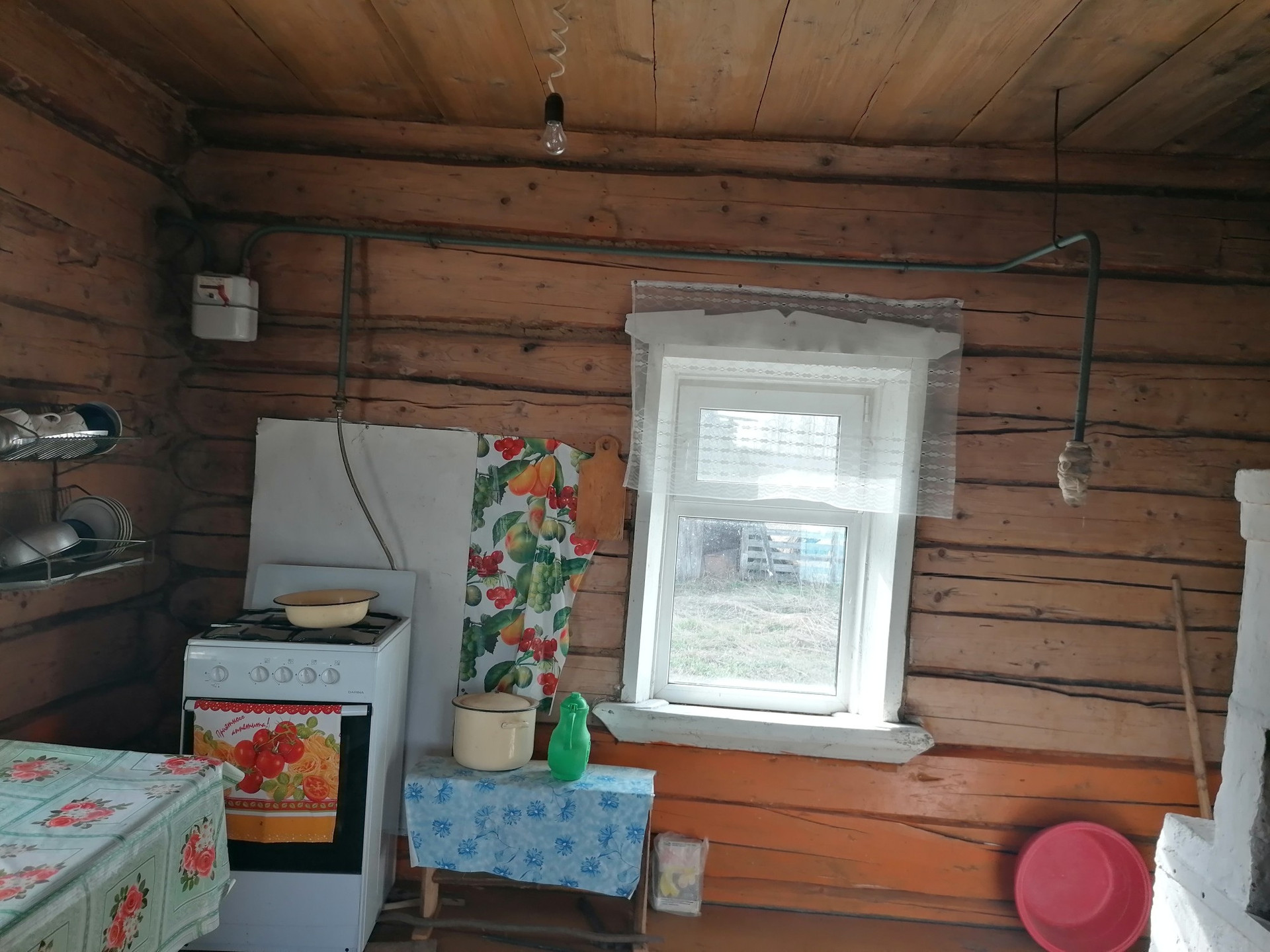 Деревянный дом с газом. Можно увеличить жилую площадь за счёт веранды, которая сделана из бревна. Участок можно разделить на 2 участка. 1 взрослый собственник.