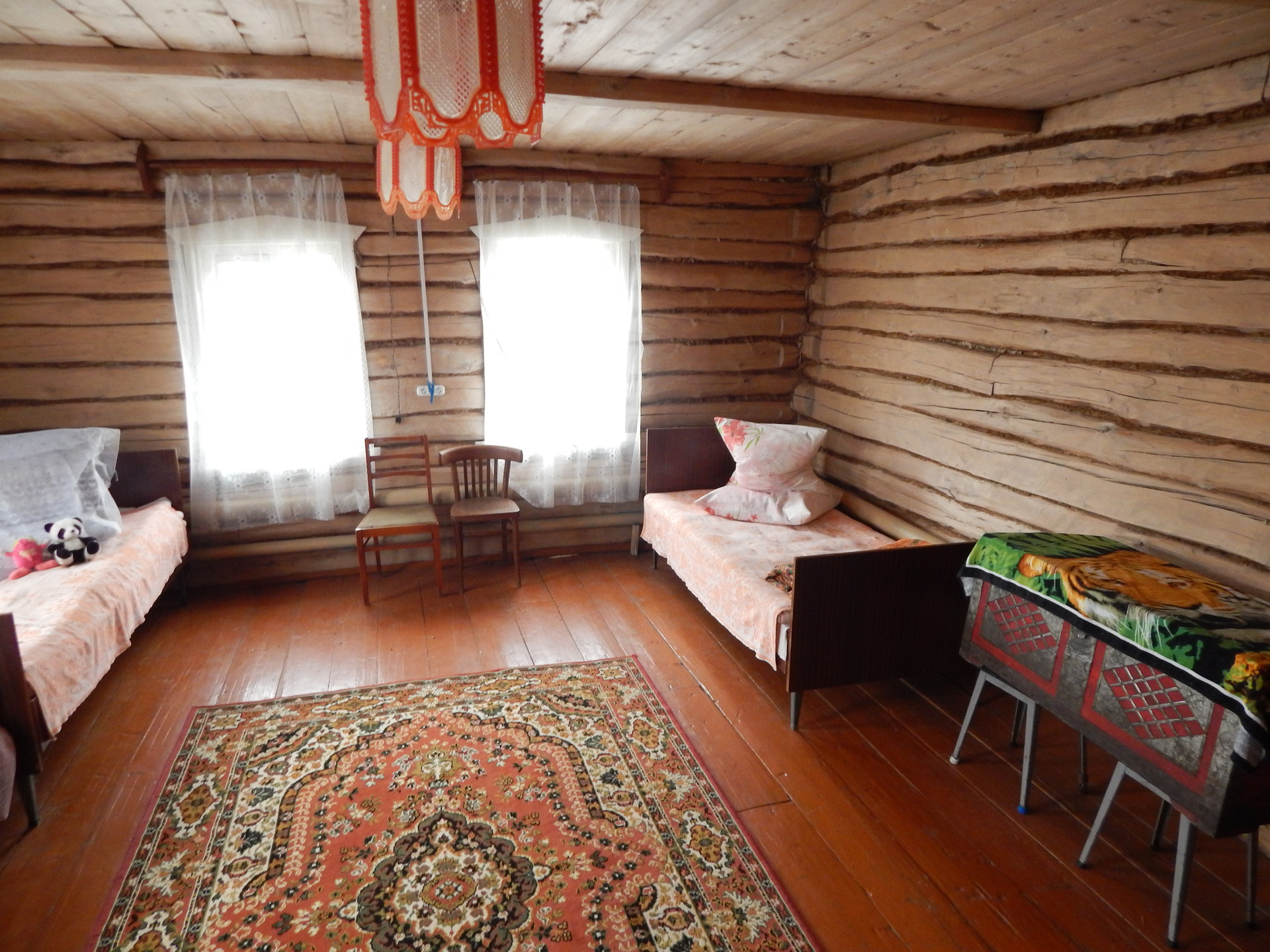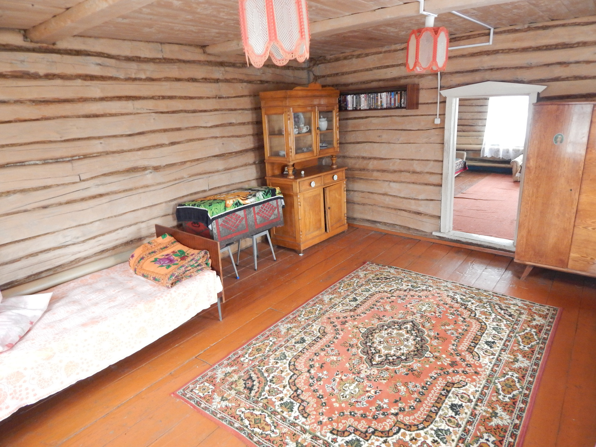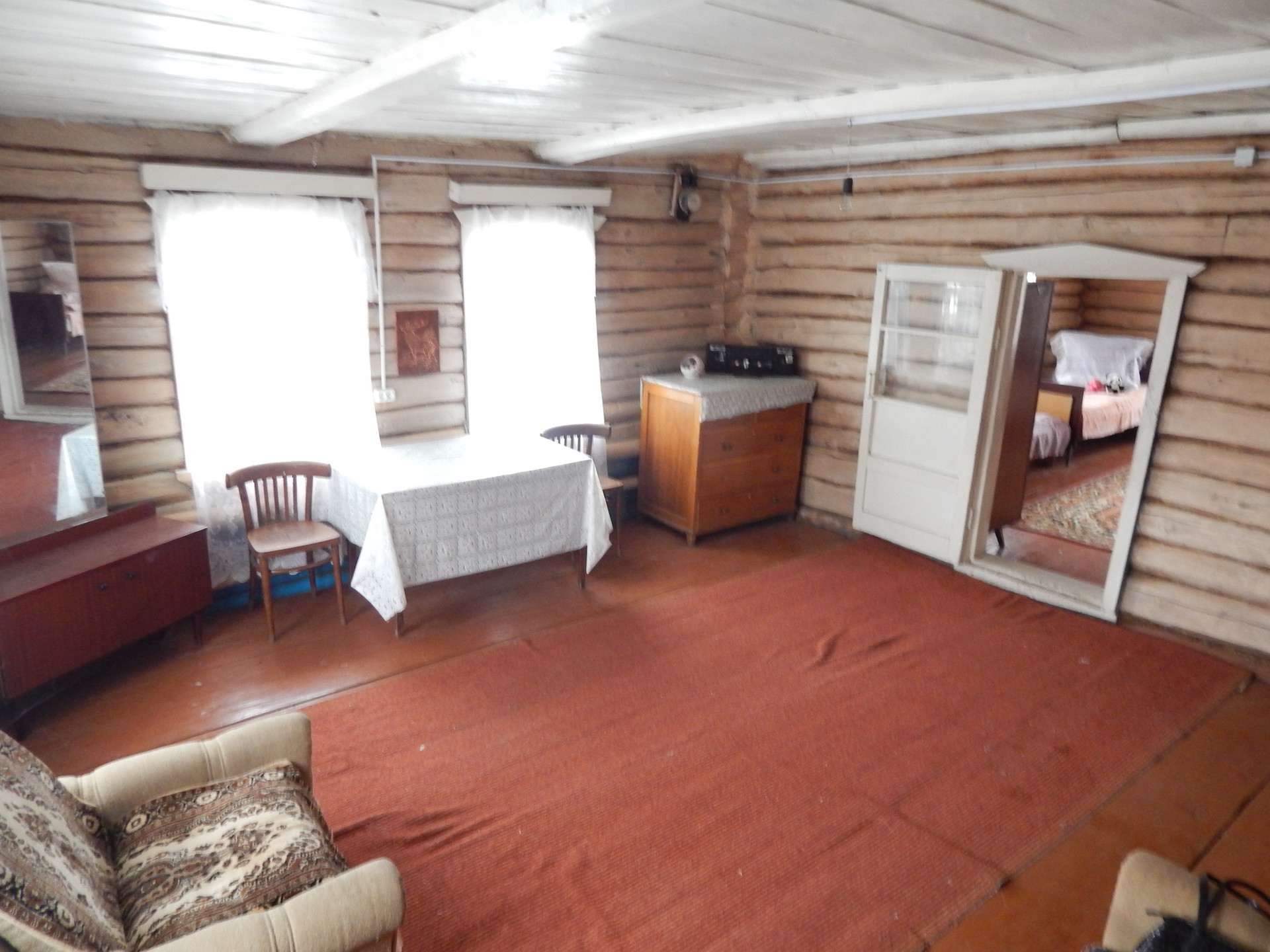 Общая площадь дома 65 кв.м.. В доме две комнаты, кухня и неотапливаемый тамбур.Дом бревенчатый. Так же имеется гараж из гипсоблоков, бревенчатая баня, хоз. постройки. В доме газовое отопление, вода во дворе.