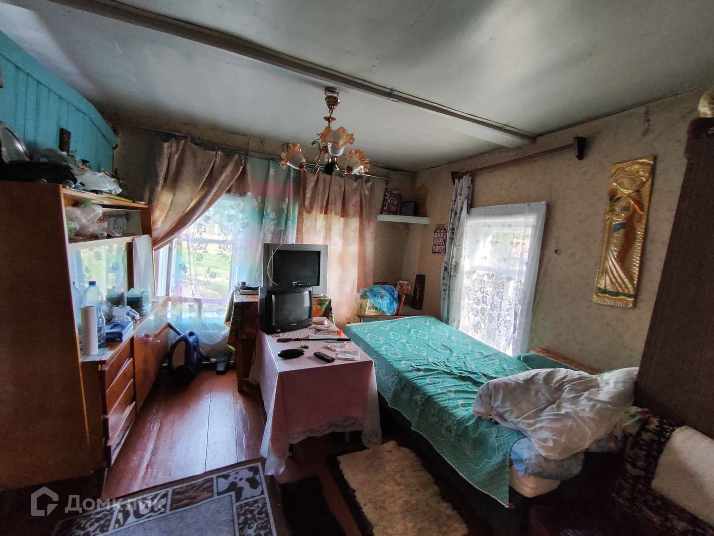 В доме 2 просторные комнаты ( 19,8+12,86) кв.м.