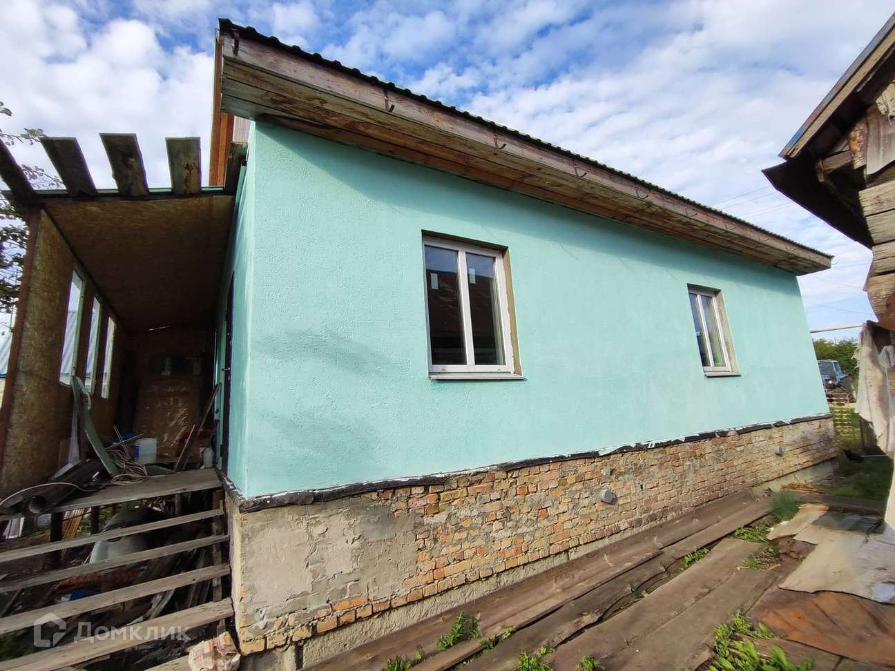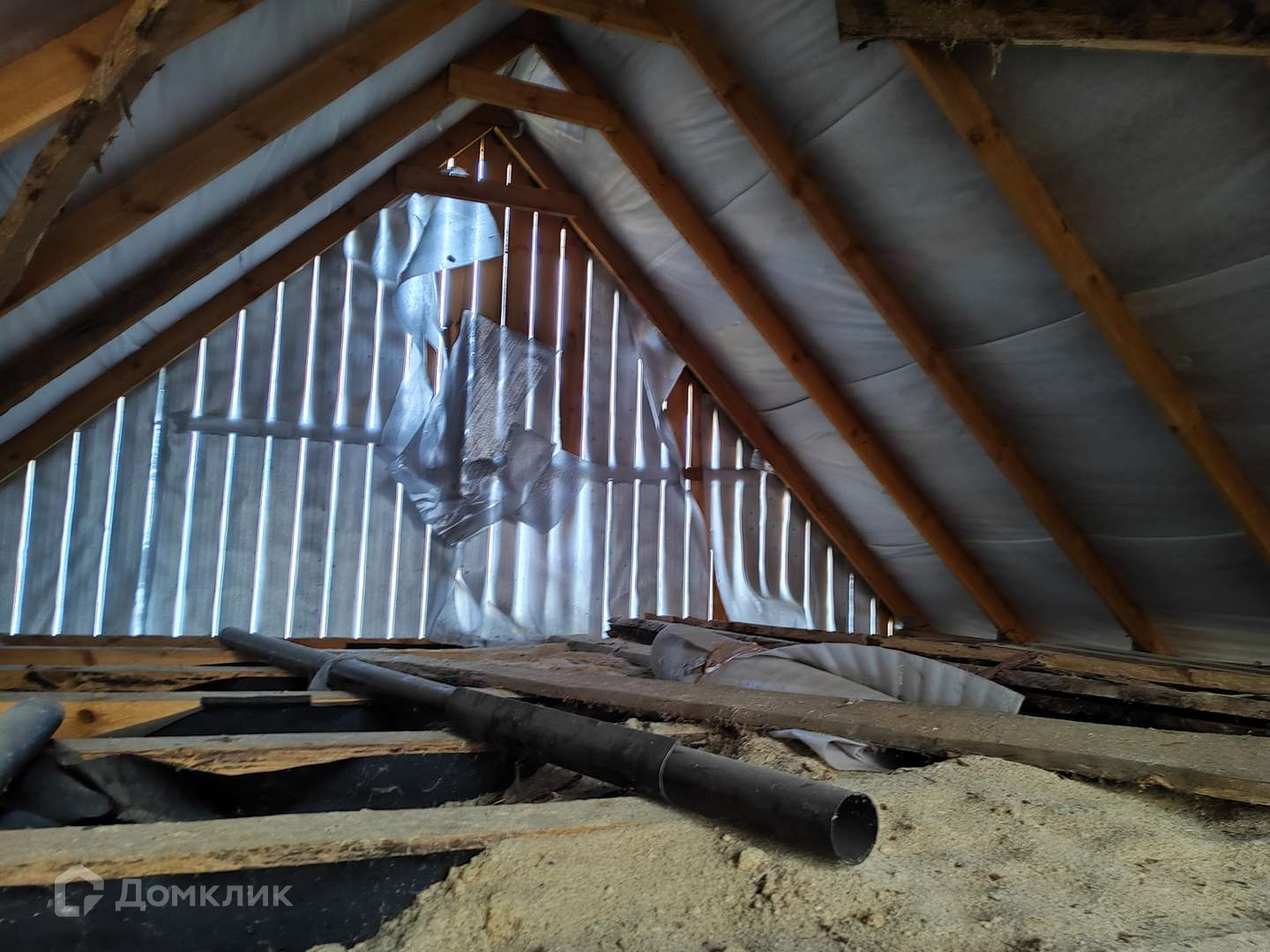 В доме разведены трубы отопления, заведено электричество, сделана стяжка пола, выровнены стены, установлены пласт окна, потолок утеплен.