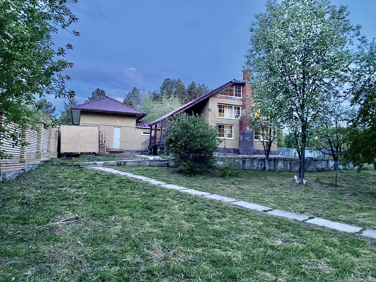 На участке растут яблони, рябина.