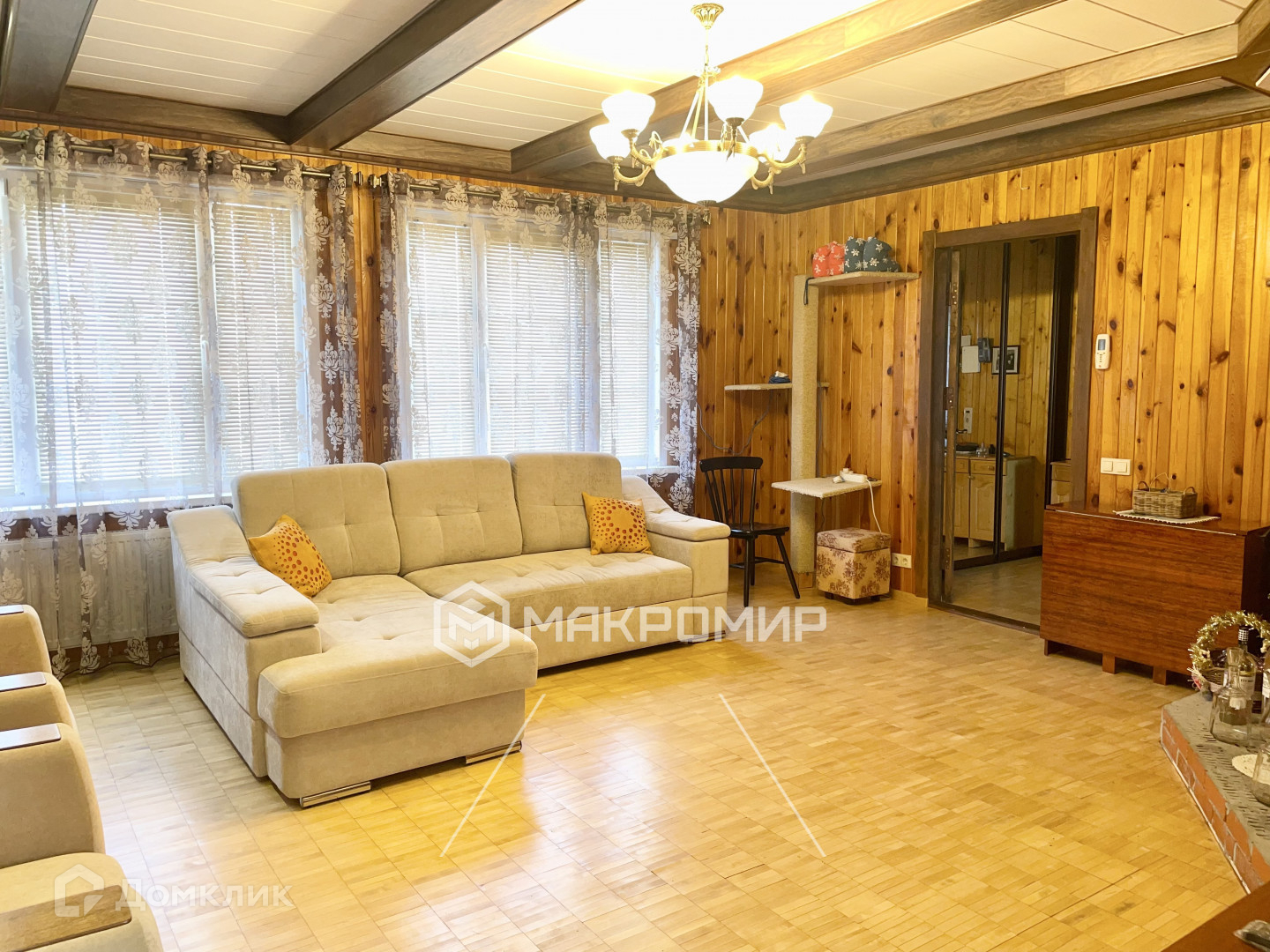 -на полу наборный паркет, тёплый пол.
