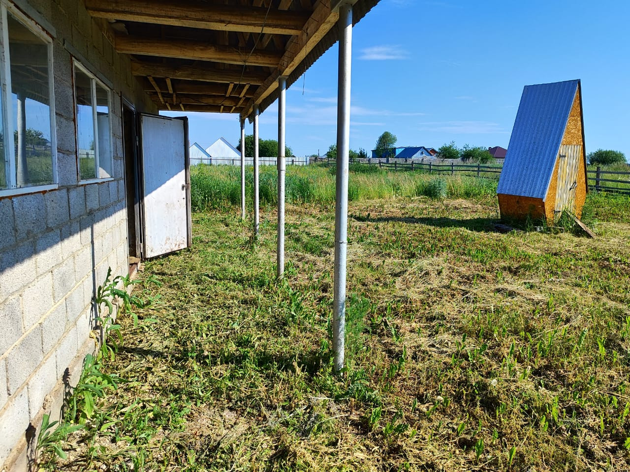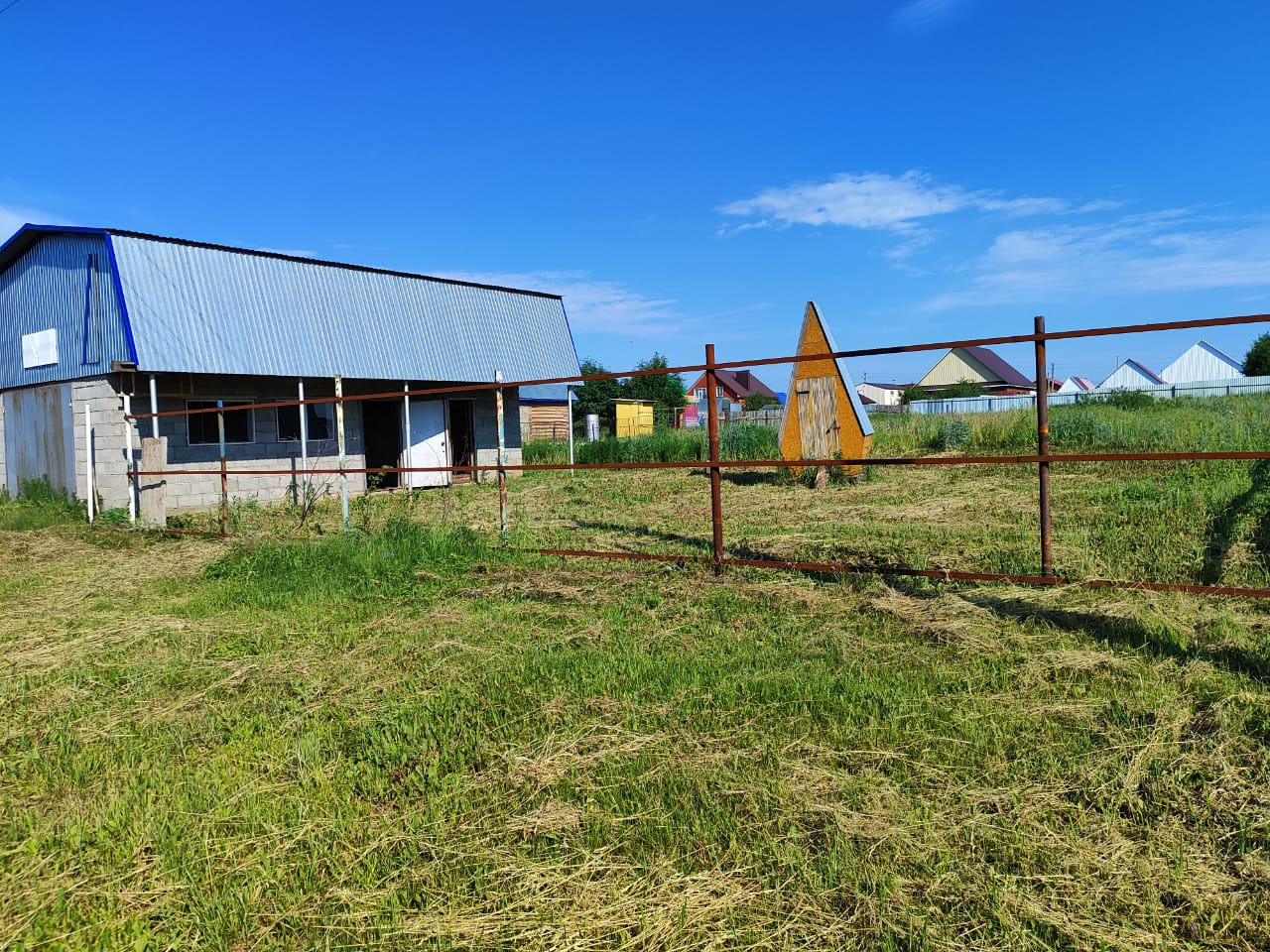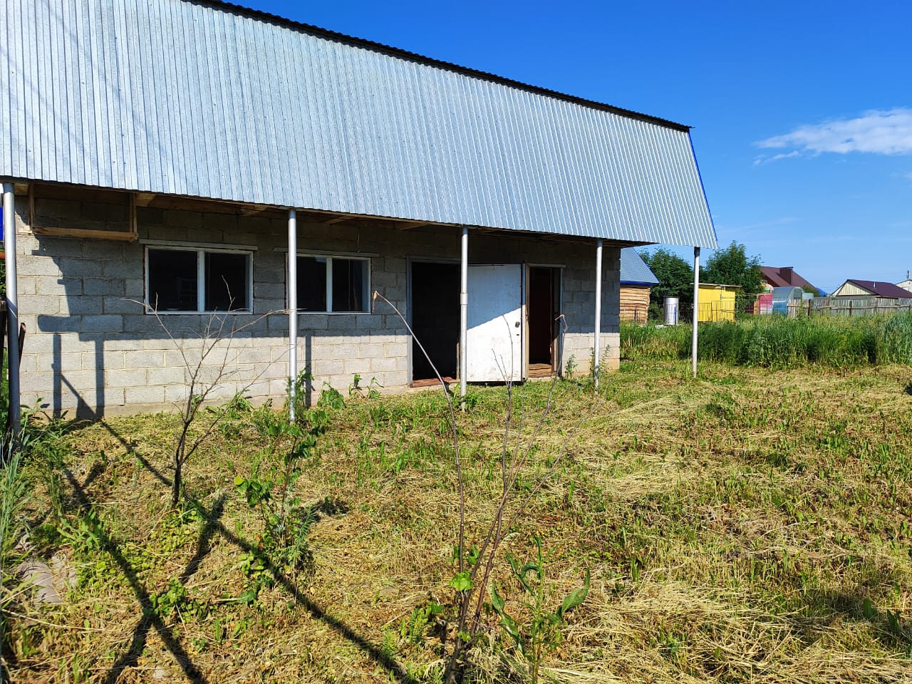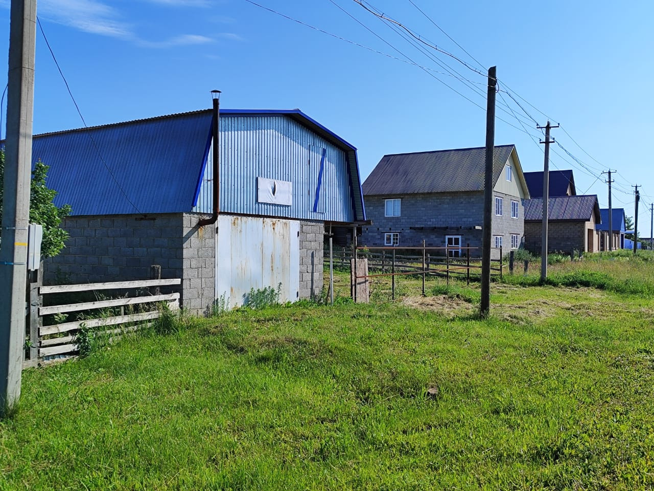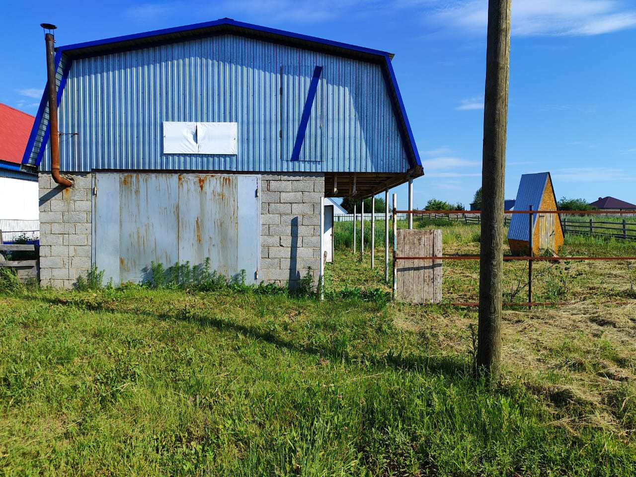 На участке расположен двухэтажный шлакоблочный гараж 5 на 8, одно помещение полностью обшито утеплителем. Есть уличный туалет.