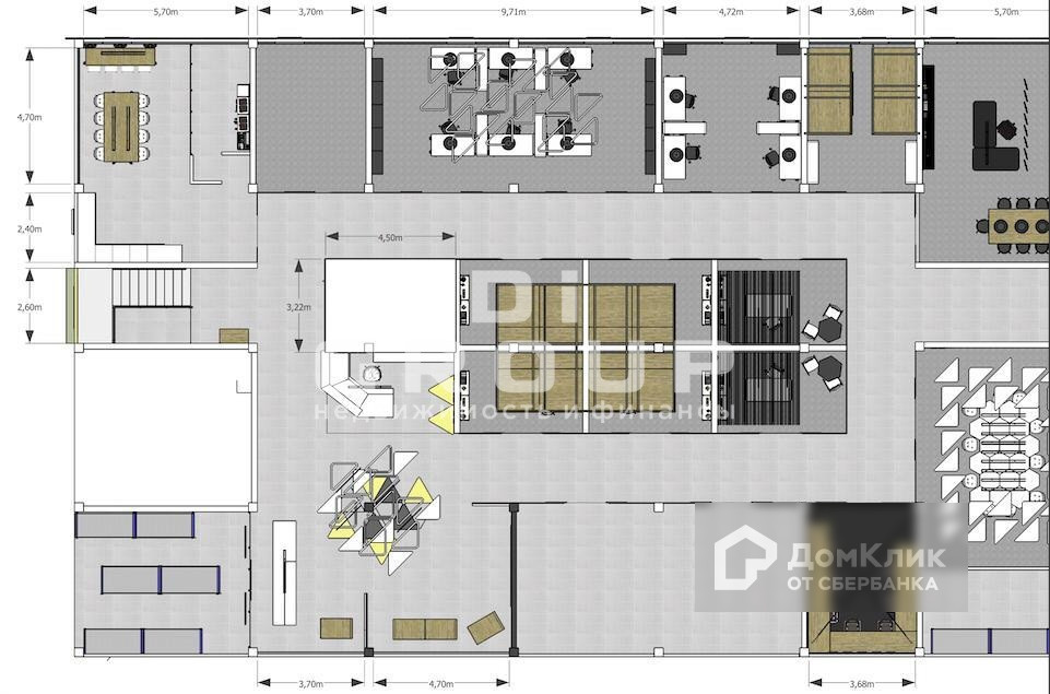 Пpоcтранствo смоделировано стеклянными перегородками, с возможностью размещения как одного человека в помещении, так и команды в несколько десятков человек; или размещения разных арендаторов.