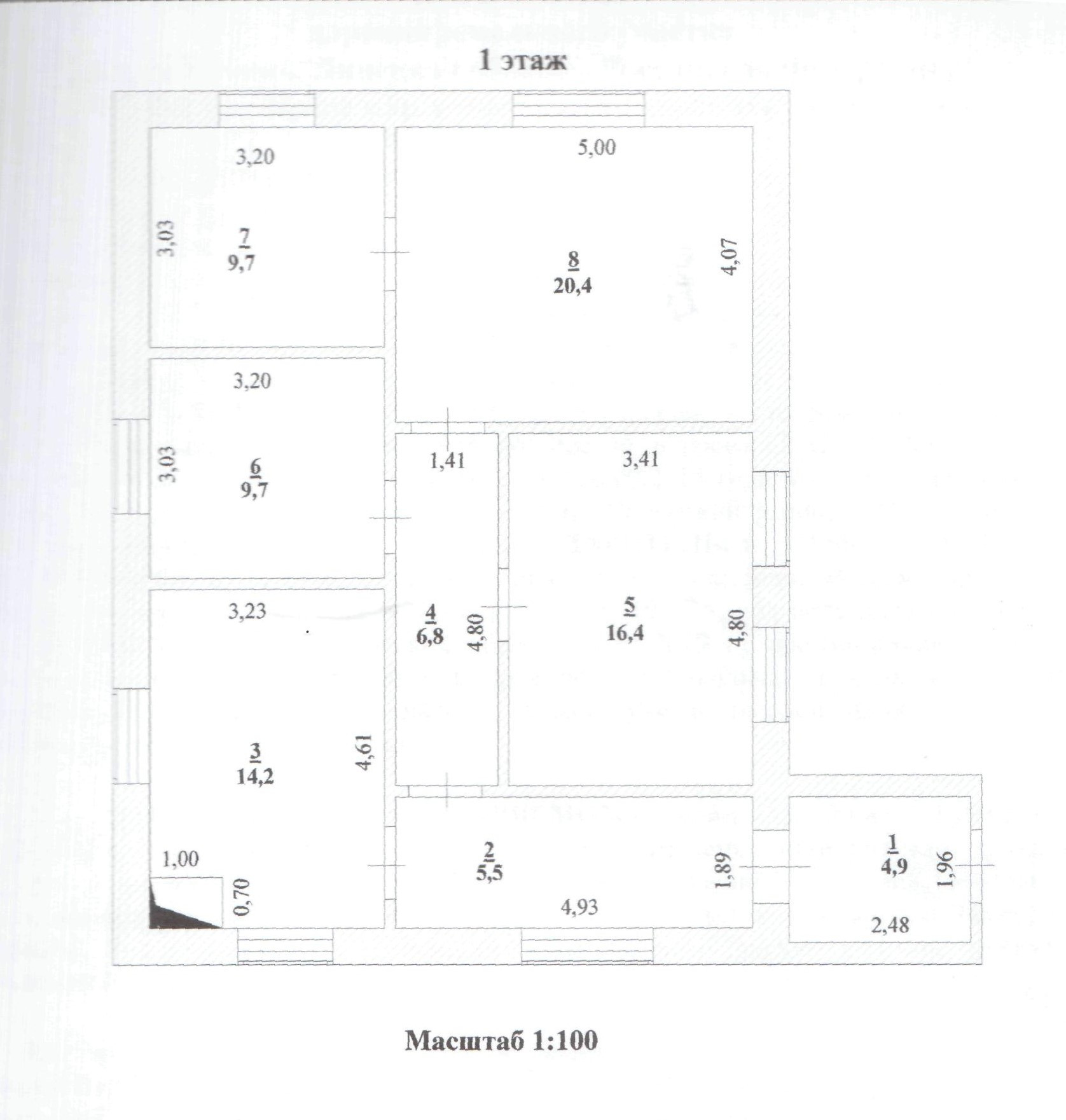 В доме расположены: три комнаты (16.4/20.4/9.7) кв.м., кухня (9.7) кв.м., санузел(14.2) кв.м., топочная, коридор- 6.8 кв.м., прихожая 5.5 кв.м. Мансардный этаж свободной планировки. Высота потолков-2,8 м. Подвальное помещение – под всем домом.