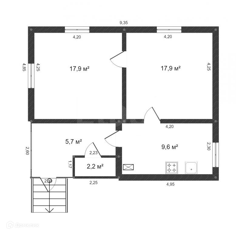 Общая площадь 53.3 м2