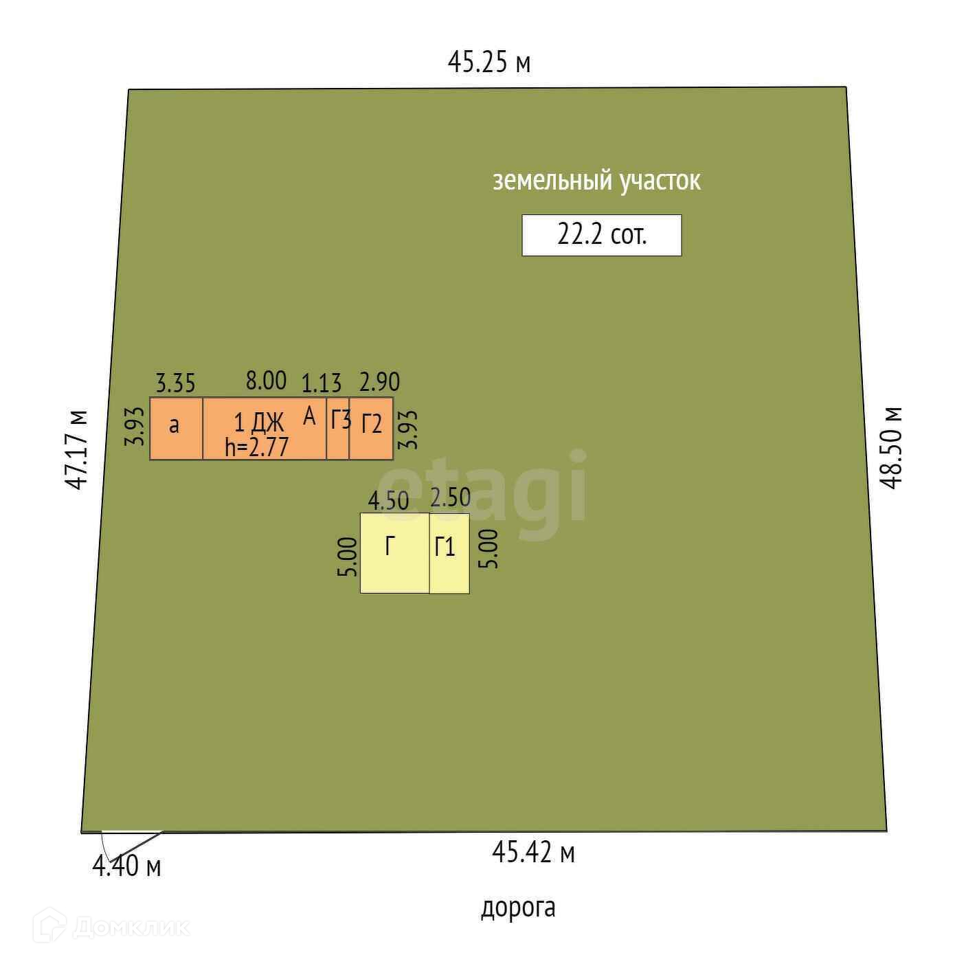 Площадь участка 22.2 сот.