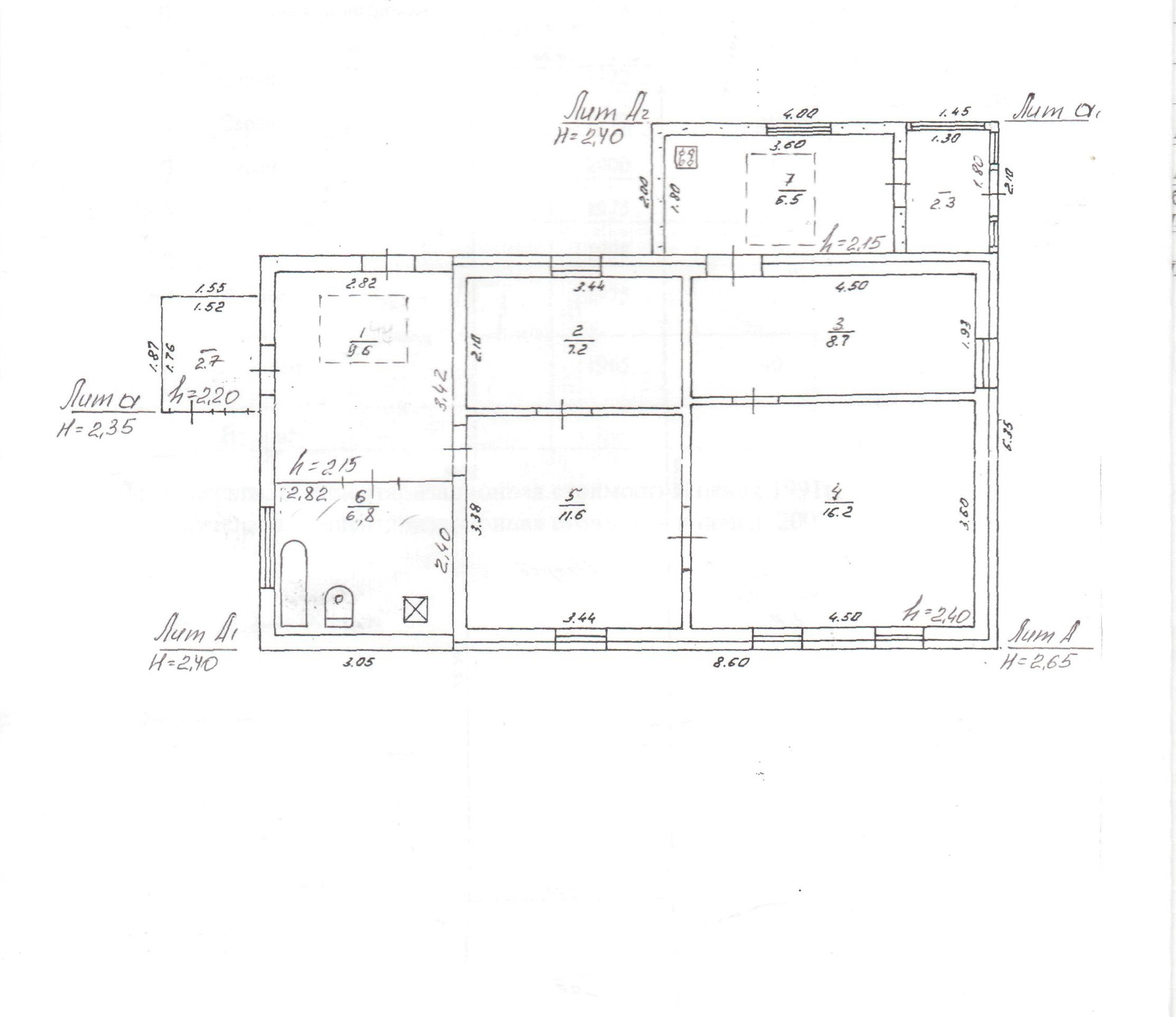 В доме четыре жилые комнаты (16,2/ 8,7/7,2/6,7) кв.м., кухня-9,6 кв.м., ванна/туалет-6,8 кв.м., тамбур-2,3 кв.м., коридор-9,6 кв.м., прихожая-2,0 кв.м., пристройка-2,7 кв.м. Окна пластиковые/деревянные, полы – деревянные покрыты линолеумом. Перекрытие потолков деревянное, высота потолков -2,4.м. Дом продается частично с мебелью.