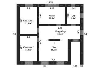 Общая площадь: 88.1 м2