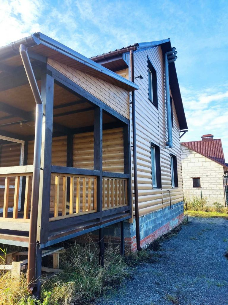Стены дома утеплены 5+5 внахлест и закрыты металлопрофилем. Дом теплоэффективный.