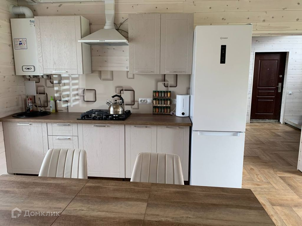 Планировка: первый этаж кухня-гостиная (новый угловой диван, полностью оборудованная встроенная кухня, кухонный гарнитур, холодильник), душевая с туалетом, прихожая (шкаф-купе). Второй этаж три изолированных спальни и рабочий кабинет. Диван и стол.